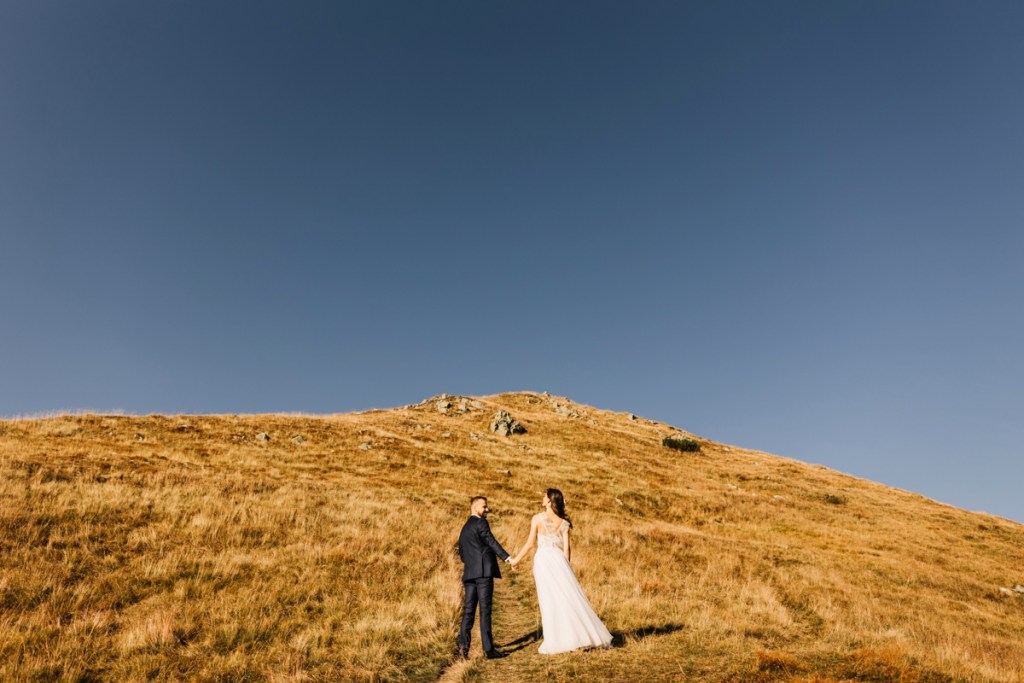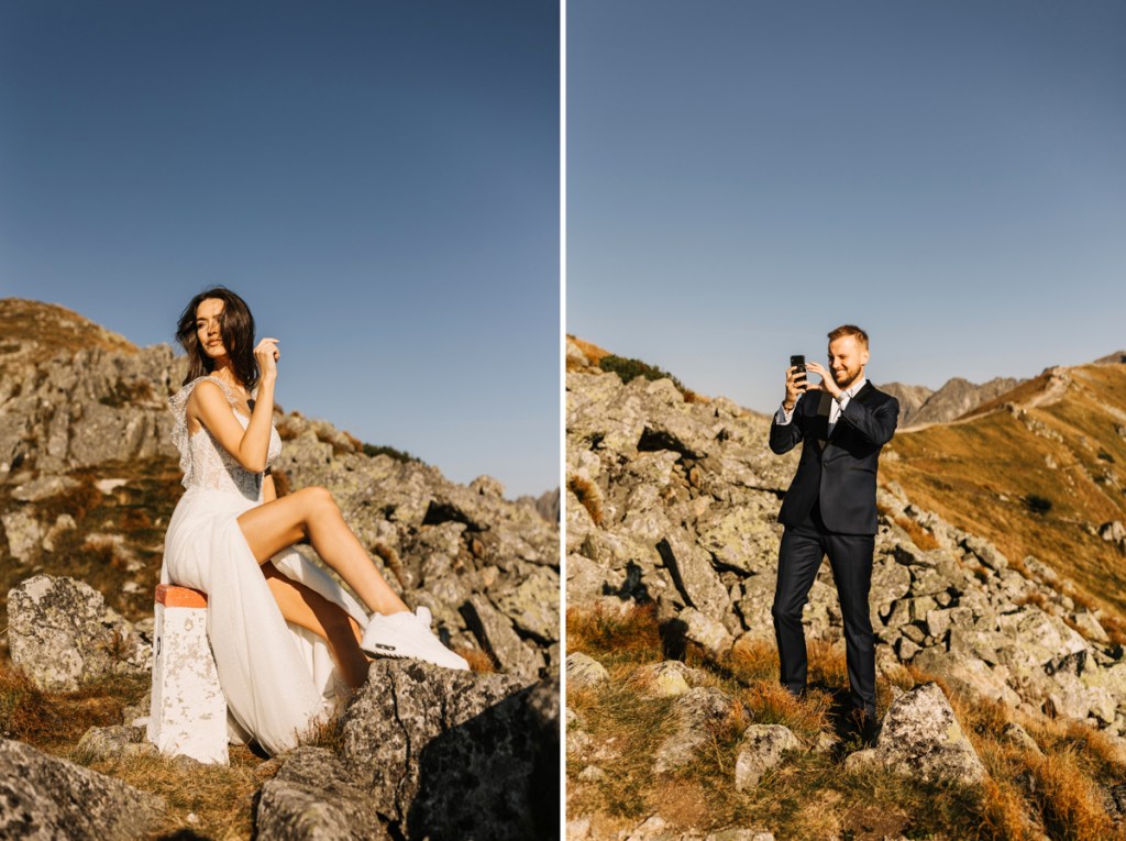 Justyna z Rafałem bardzo chcieli mieć sesję ślubną wykonaną w górach, a do tego najprzyjemniejszym miejscem jest oczywiście Kasprowy Wierch. Nie trzeba się tam wspinać bo na szczyt zawozi nas kolejka, więc na górze jesteśmy szybko i nie zmęczymy się przy podchodzeniu.