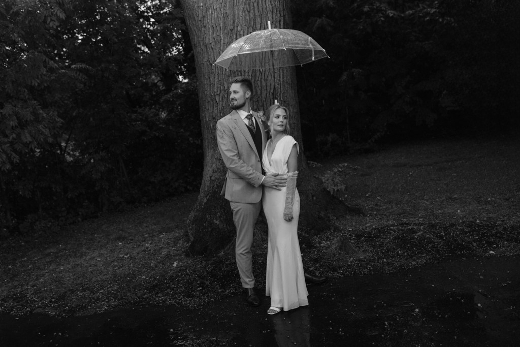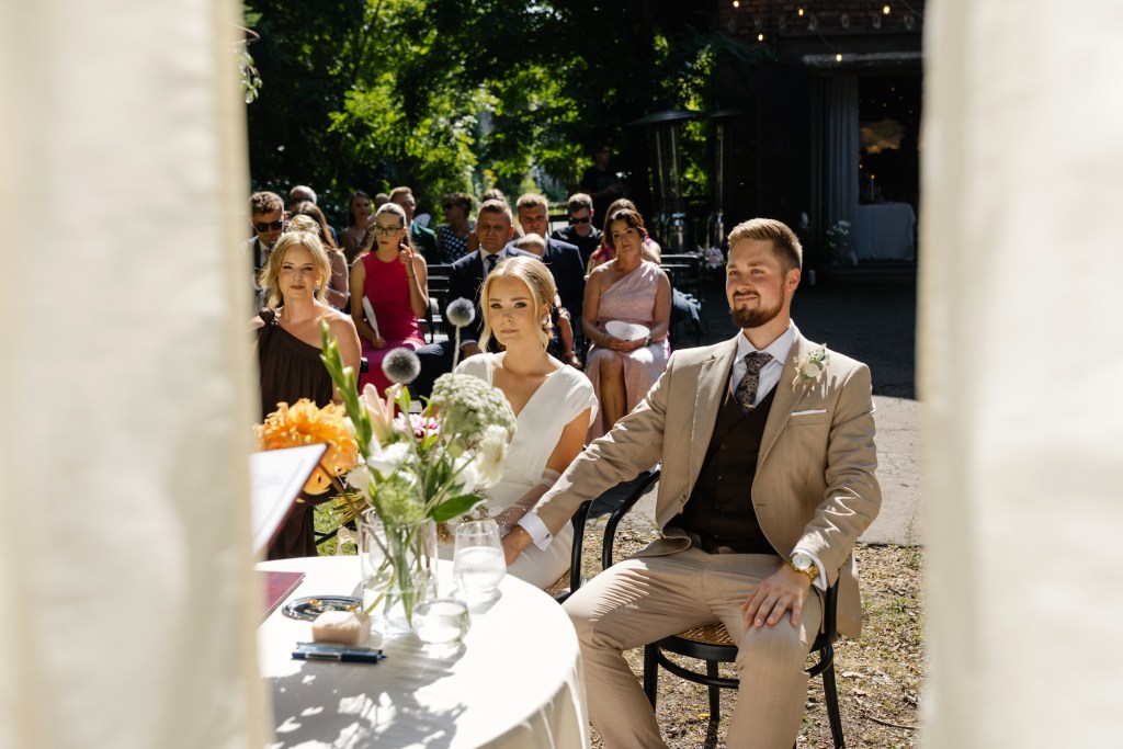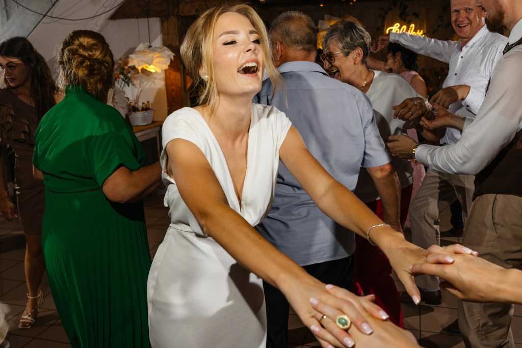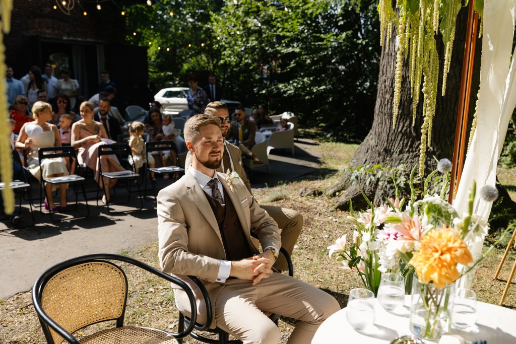 Przygotowania Żanety były pełne stylu — modne dodatki, dopracowane detale i delikatna, ponadczasowa estetyka, którą podkreśliłem subtelną obróbką zdjęć. Ceremonia w plenerze odbyła się w pełnym słońcu, co było fotograficznym wyzwaniem, ale dało niezwykle autentyczne kadry pełne emocji. Dużo pracowałem z fleszem, dzięki czemu zdjęcia zyskały nowoczesny charakter i lekko offowy, idealnie dopasowany do klimatu miejsca.