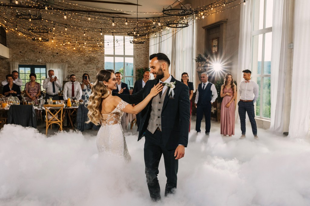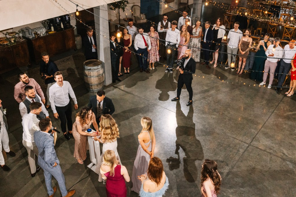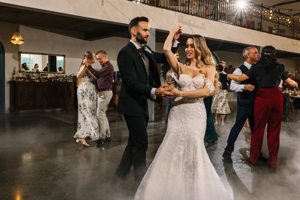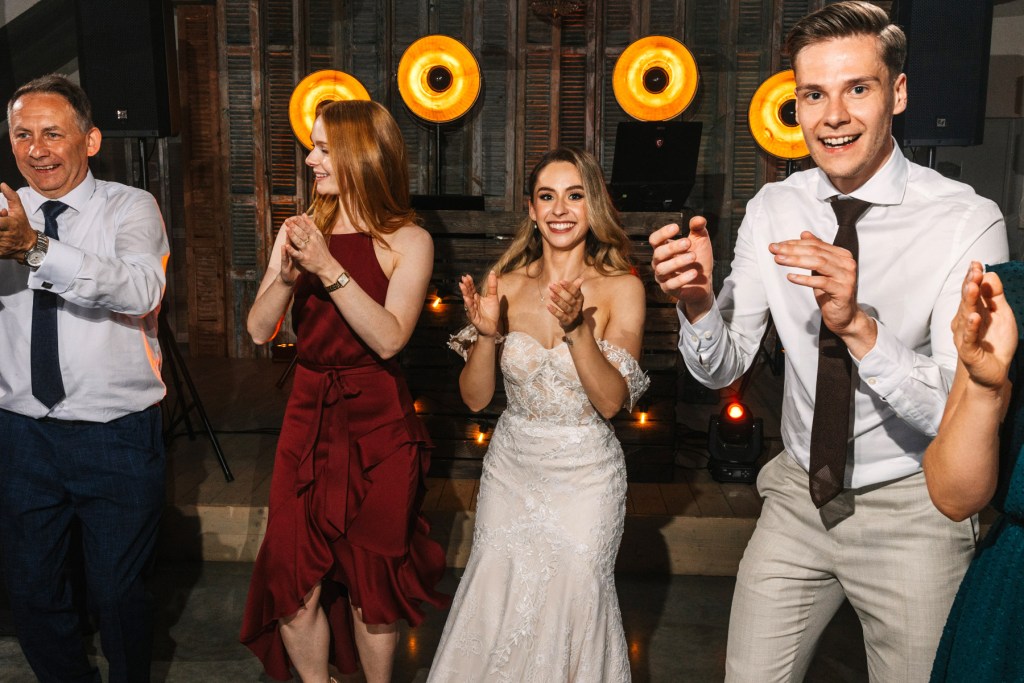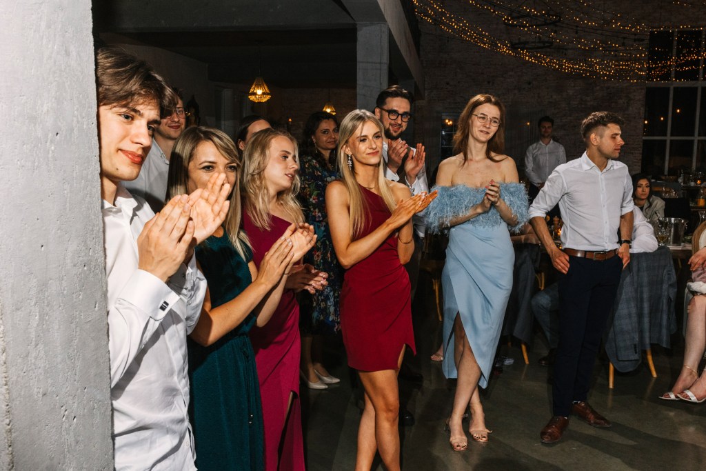 Po ceremonii wszyscy skierowali się na taras, na składanie życzeń nowożeńcom, by już za chwilę udać się na obiad, którego nie powstydziłaby się żadna z cenionych w Polsce restauracji. Jeszcze chwila, jeszcze toasty, i można ruszać na parkiet. Goście wyczekiwali zapełniając go w mgnieniu oka. Młodzi wyraźnie zarazili swoją indywidualnym podejściem do całego przyjęcia, bo nie pamiętam aż tak wielu solówek na parkiecie, jak na tym weselu.