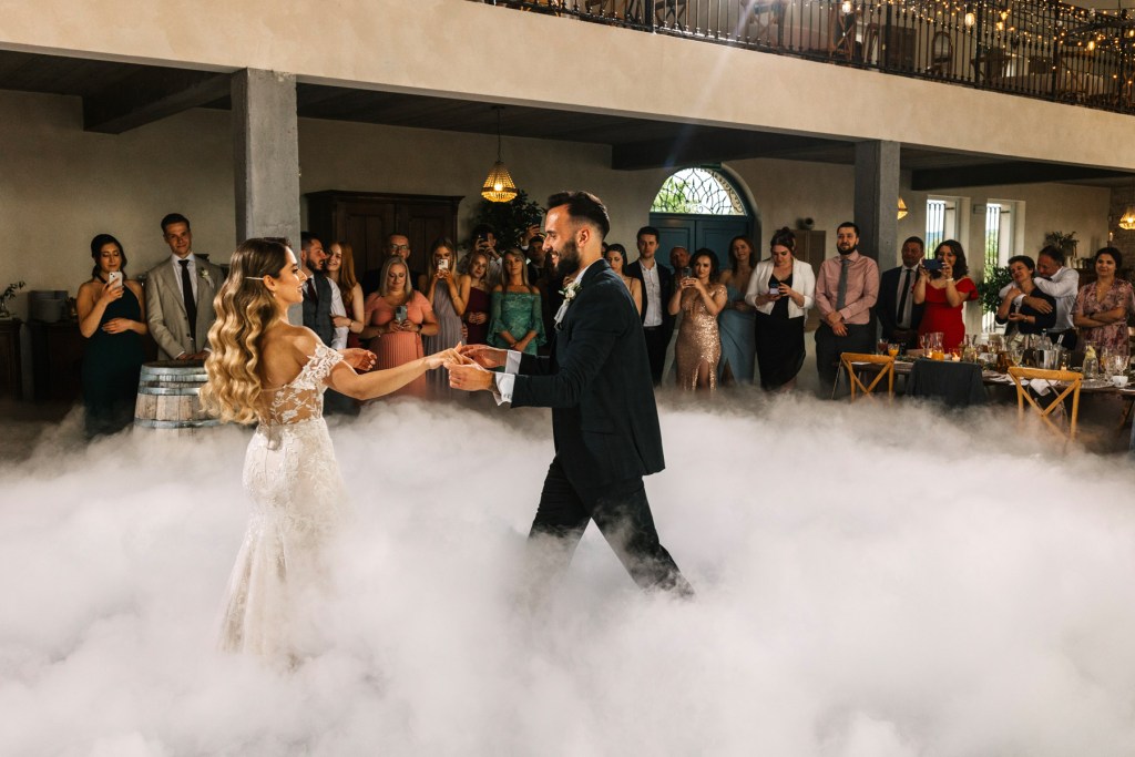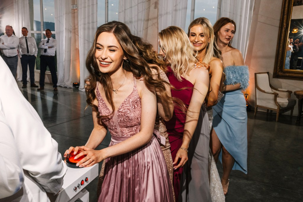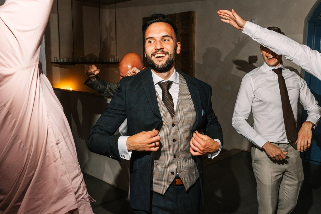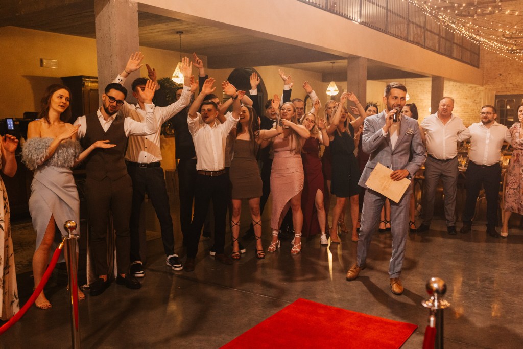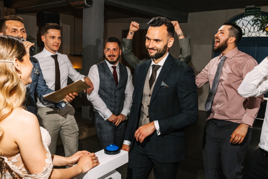 Po ceremonii wszyscy skierowali się na taras, na składanie życzeń nowożeńcom, by już za chwilę udać się na obiad, którego nie powstydziłaby się żadna z cenionych w Polsce restauracji. Jeszcze chwila, jeszcze toasty, i można ruszać na parkiet. Goście wyczekiwali zapełniając go w mgnieniu oka. Młodzi wyraźnie zarazili swoją indywidualnym podejściem do całego przyjęcia, bo nie pamiętam aż tak wielu solówek na parkiecie, jak na tym weselu.