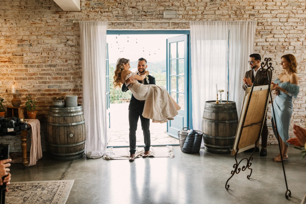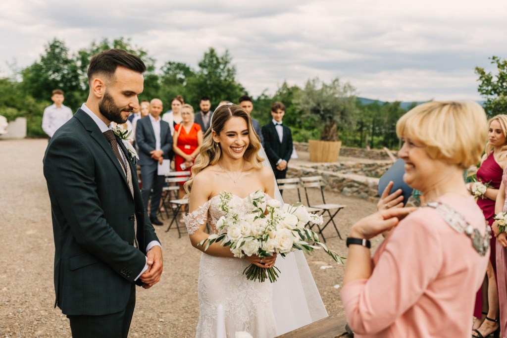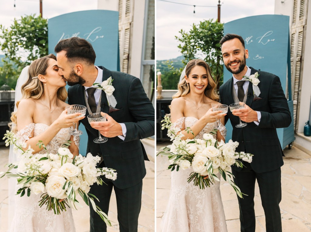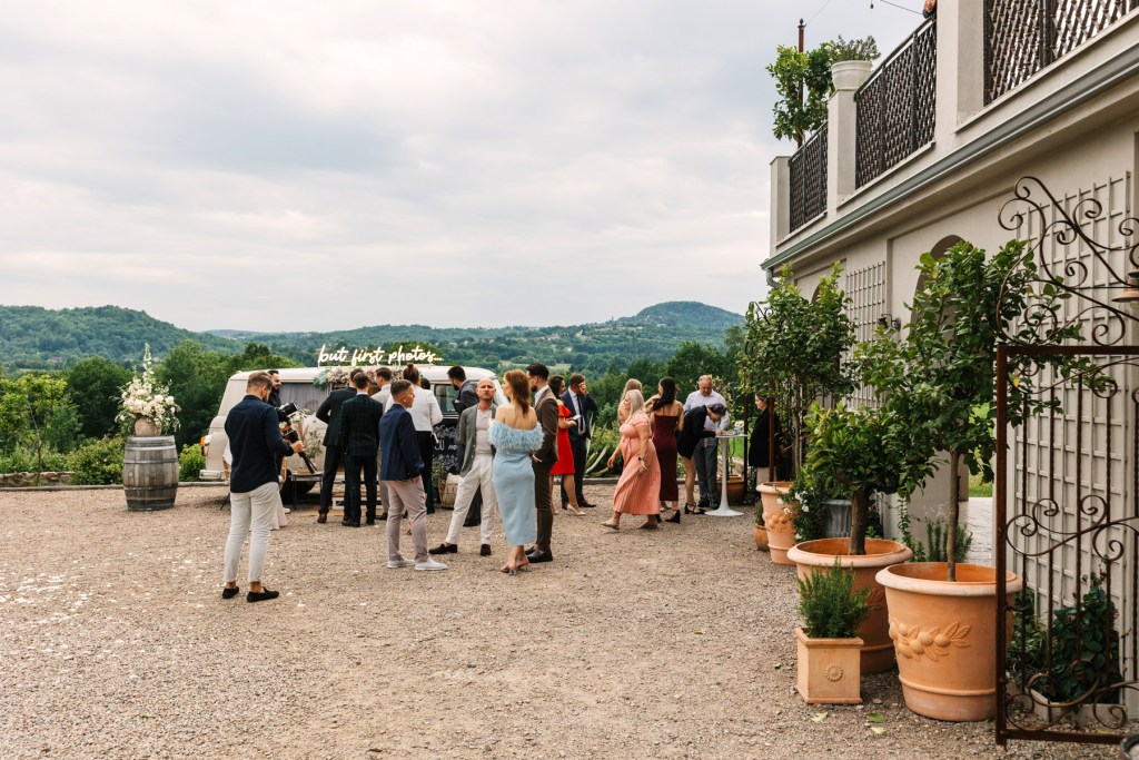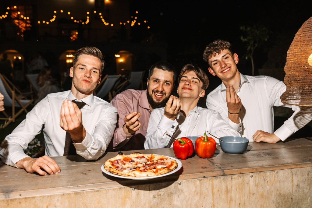 Całe wesele było w prawdziwie włoskim stylu, mieliśmy przesiadywanie na tarasie, powolne popijanie drinków oraz włoską pizzę wypiekaną w piecu na zewnątrz. Choć wesele było stosunkowo nieduże, to właśnie dzięki temu mieliśmy dużo czasu na sesje we dwoje, zdjęcia rodzinne i zdjęcia grupowe.