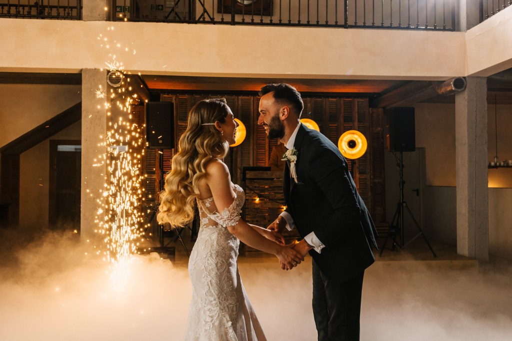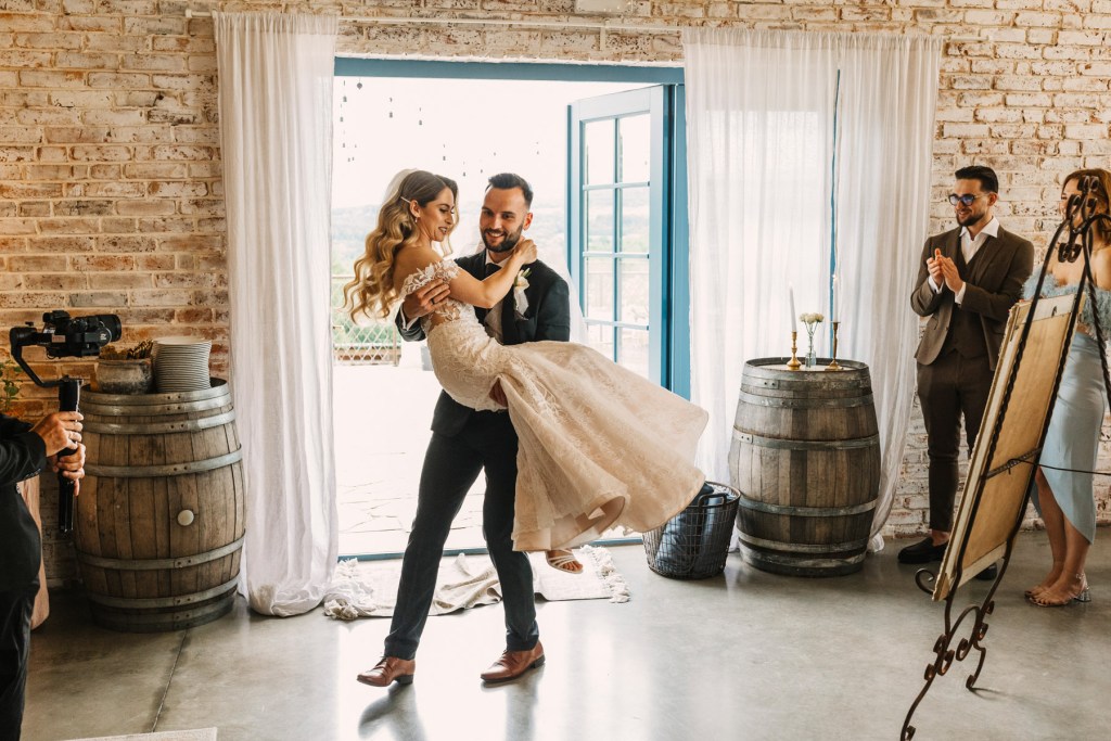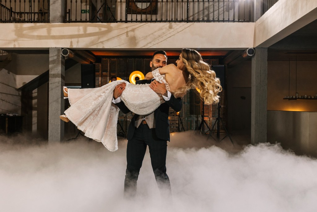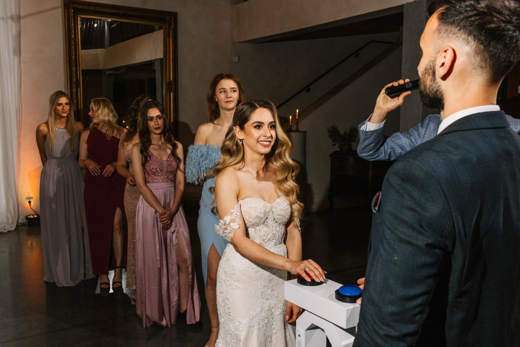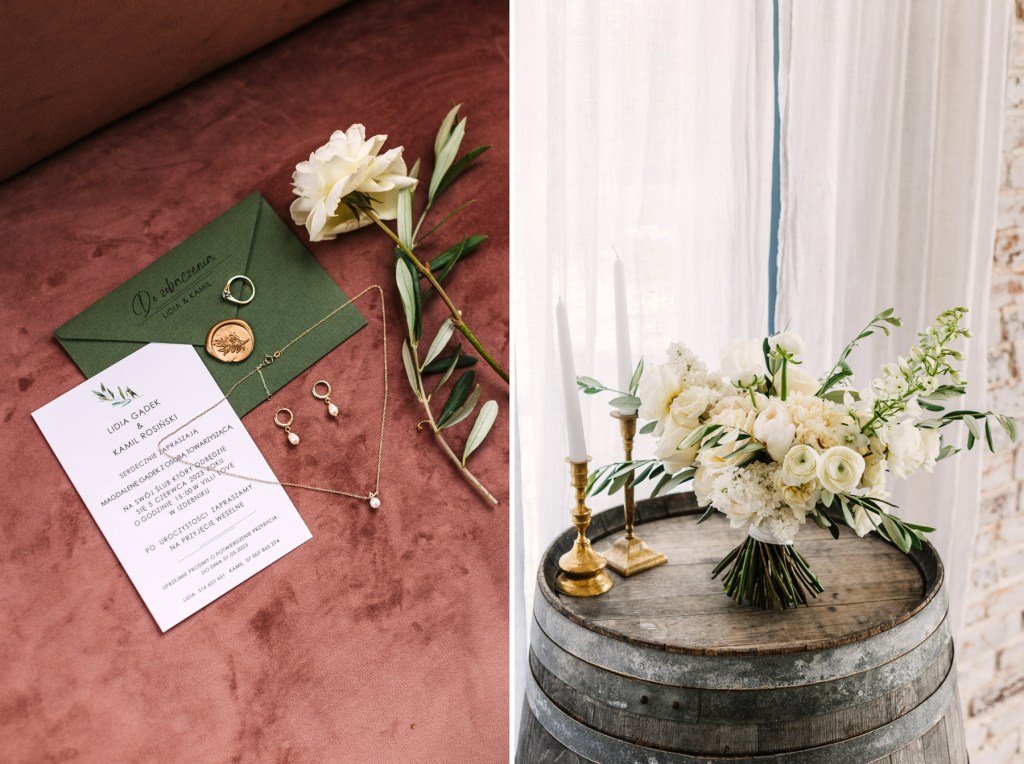 A pozostając już w temacie detali – miałem sporo czasu, aby przyjrzeć im się dokładnie i je sfotografować, ponieważ państwo młodzi byli na miejscu już rano, co dało nam wiele czasu na to, aby stworzyć szczegółowy reportaż z ich przygotowań. Z każdą chwilą gości przybywało, w przestrzeniach słychać było gwar rozmów, który przerwany został w momencie pojawienia się na sali Lidii. Wtedy już wszystkie oczy, cała uwaga była skupiona na niej. Szczególnie uwaga Kamila, który czekając na swoją wybrankę z bukietem kwiatów, nie krył dumy na jej widok. Wiedzieliśmy, że w końcu nadeszła ta wielka chwila.