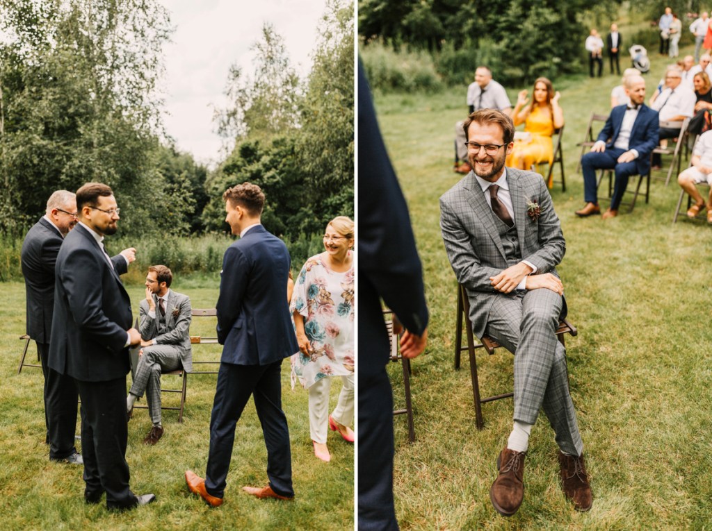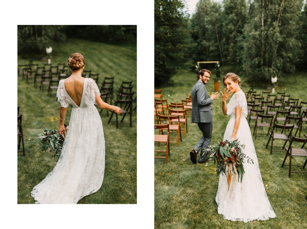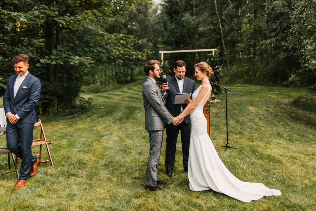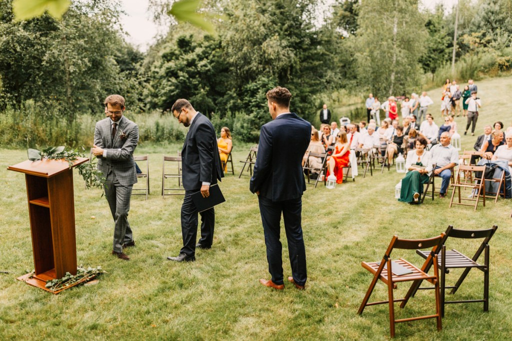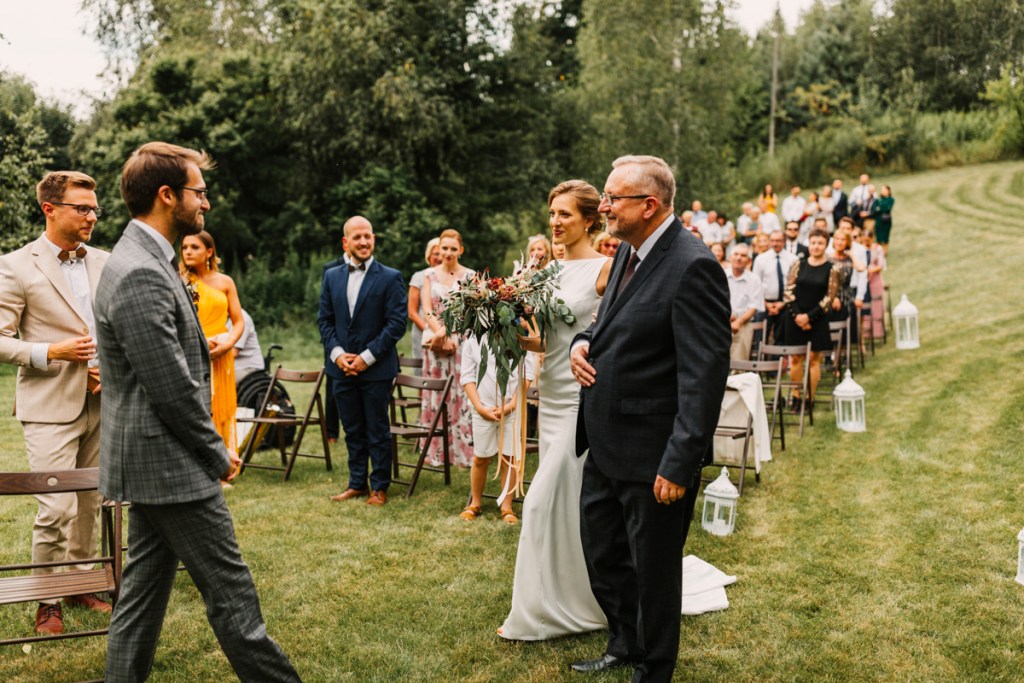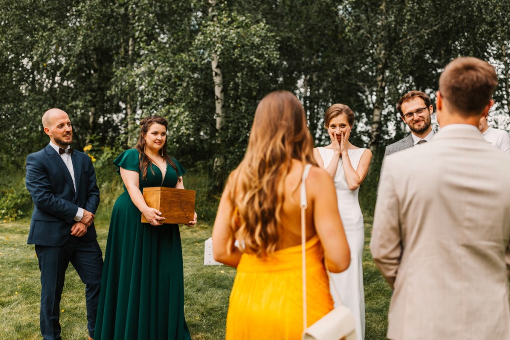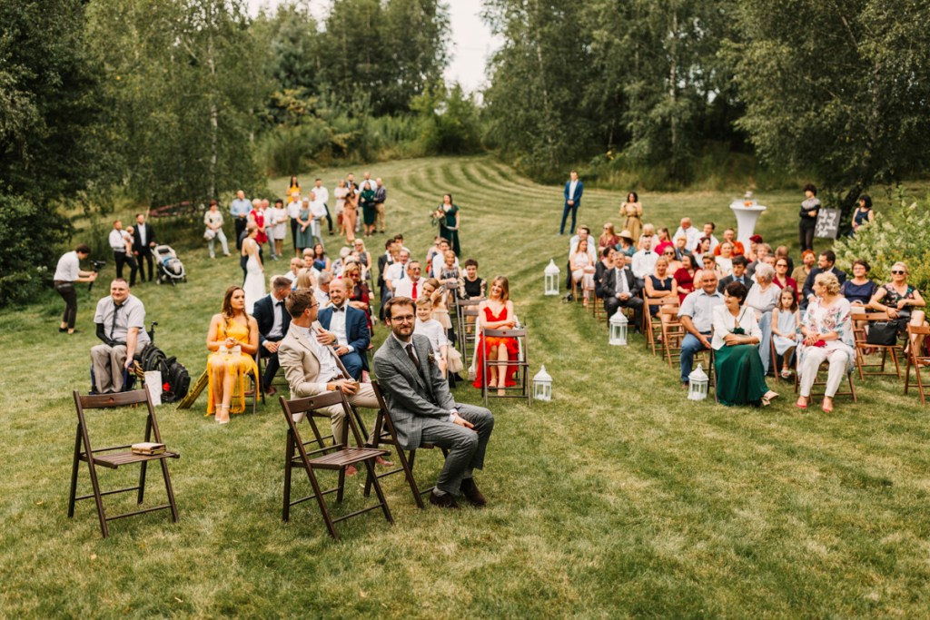 Dzięki osobnym przygotowaniom, nasi młodzi mogli zobaczyć się po raz pierwszy dopiero na miejscu ceremonii, na polanie w Stodoła Zielone Wzgórze. I nie była to byle jaka ceremonia, tylko plenerowa na łące pośród drzew.