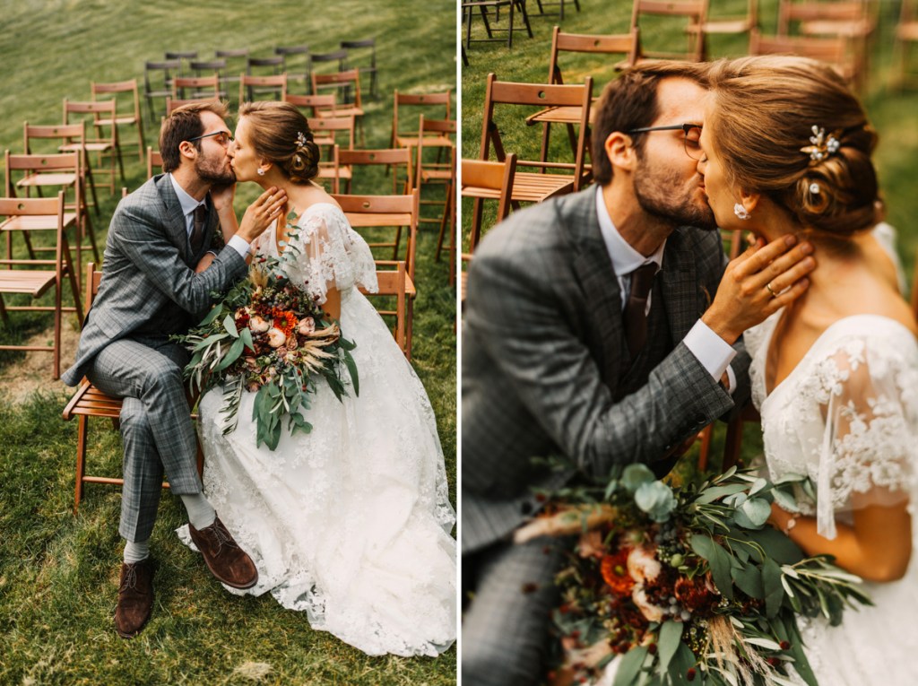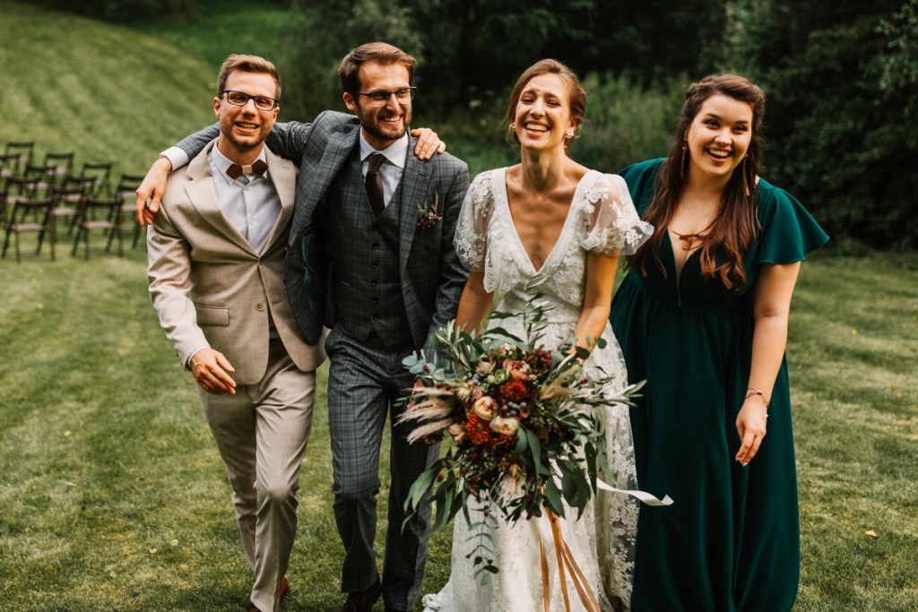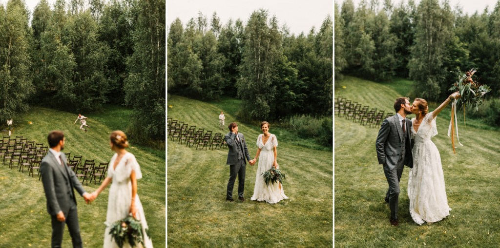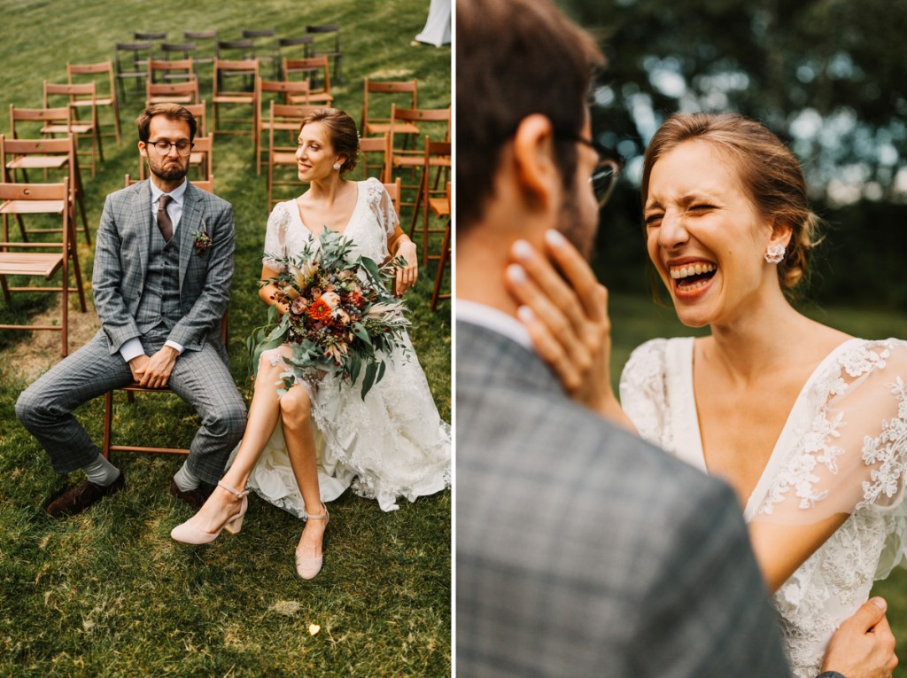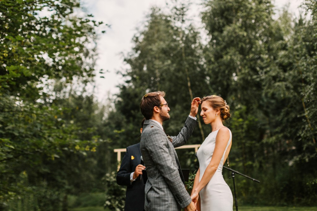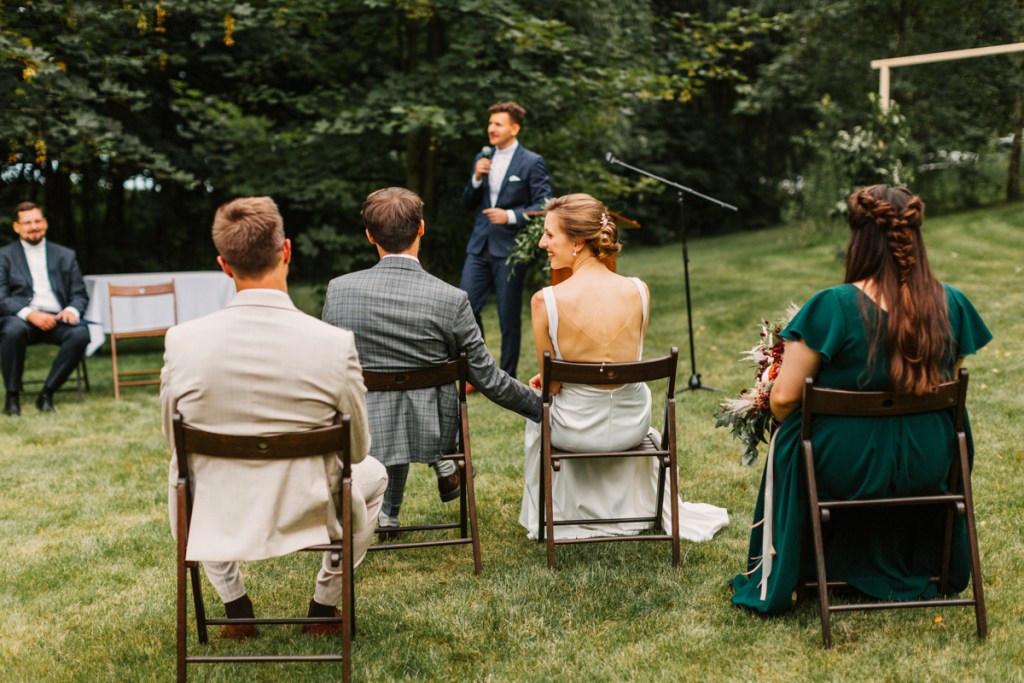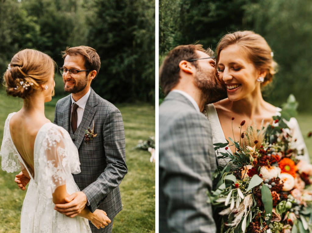 Dzięki osobnym przygotowaniom, nasi młodzi mogli zobaczyć się po raz pierwszy dopiero na miejscu ceremonii, na polanie w Stodoła Zielone Wzgórze. I nie była to byle jaka ceremonia, tylko plenerowa na łące pośród drzew.