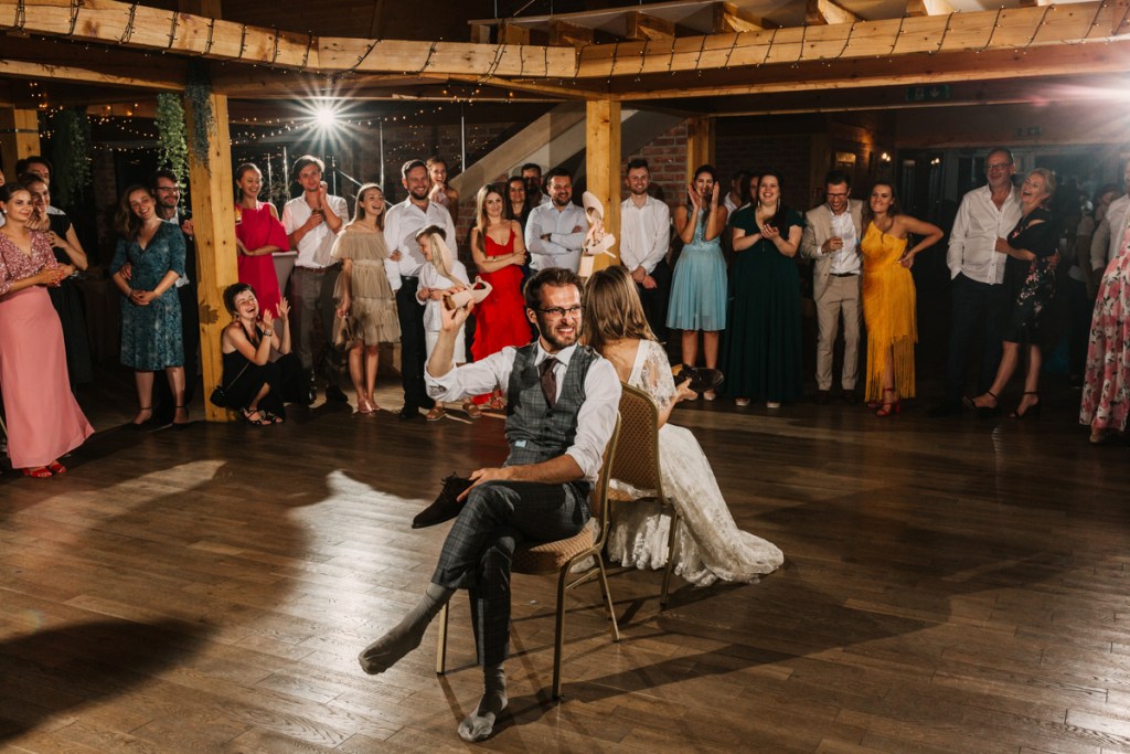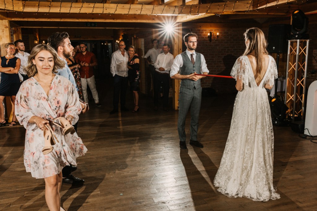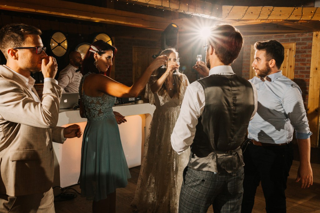 Po powrocie na salę DJ Mess pokazał wszystkim jak w Stodoła Zielone Wzgórze podpala się parkiet i jak już zaczęliśmy robić foty na zabawie tak skończyliśmy dopiero po północy. W między czasie poznaliśmy nieodkryty przez nas hit wesel czyli Jessica, na parkiet weszła mama z koleżankami wykonać jeden z utworów ABBY, był konkurs limbo, oczepiny, odbijane & przytulane i walenie shotów na parkiecie.