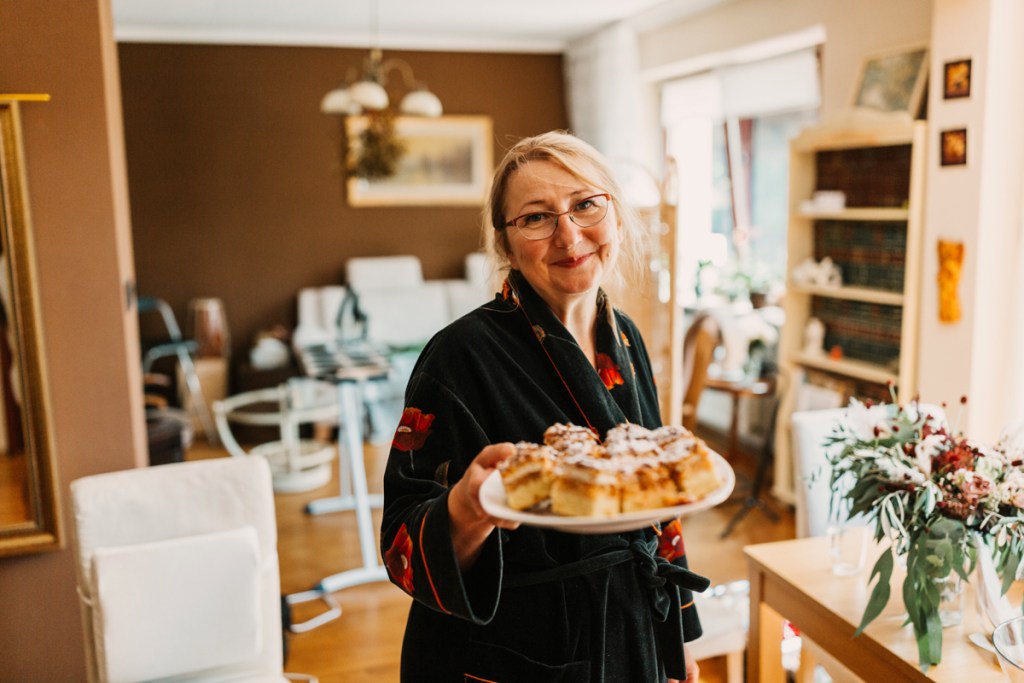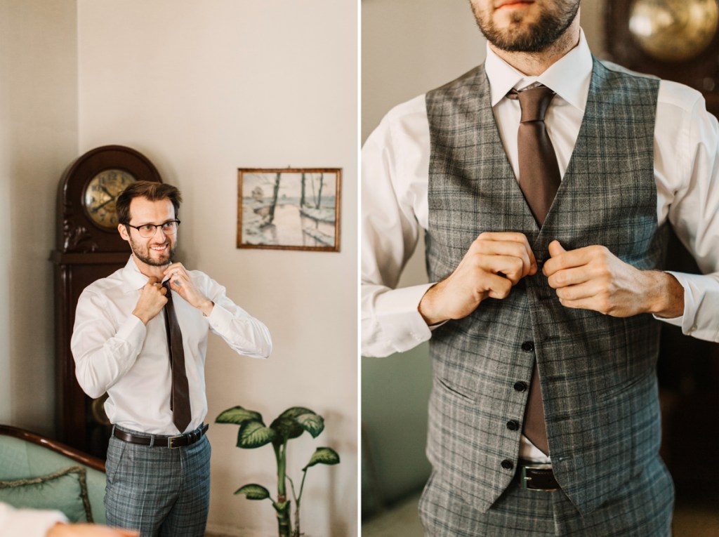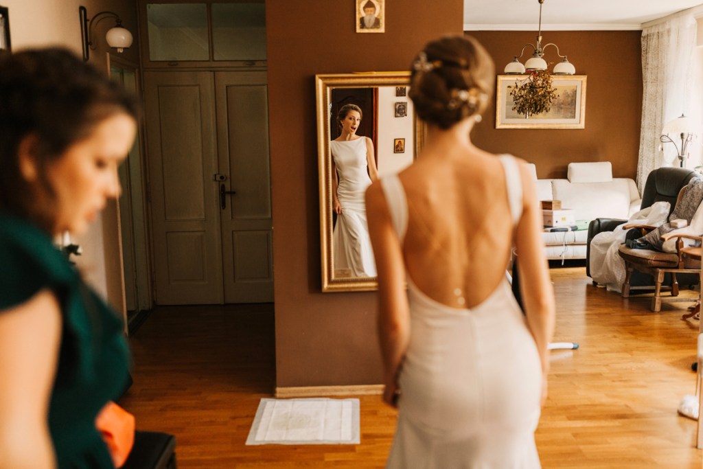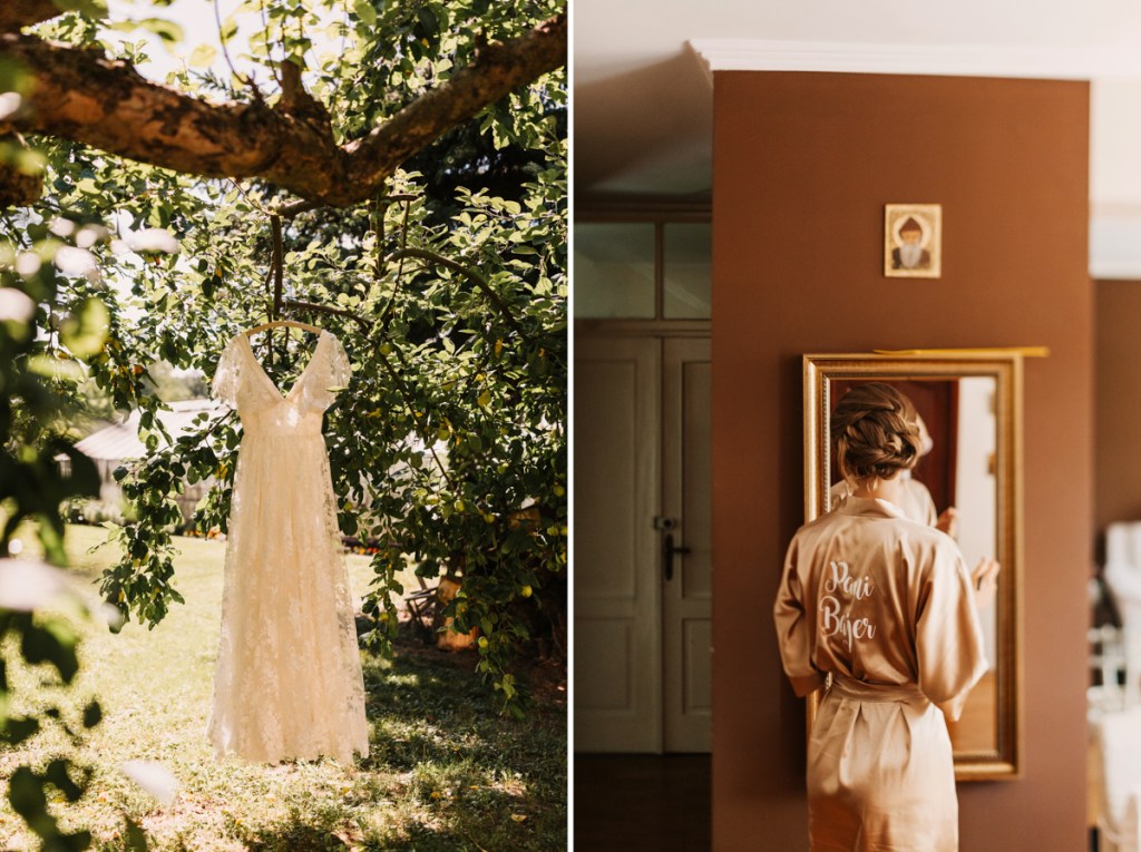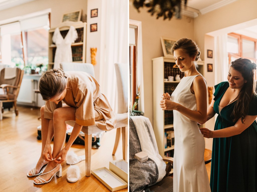 Podczas przygotowań w domu bardzo fajnie można poczuć domową, rodzinną atmosferę. Jest czas aby spokojnie wypić kawę a mama Asi poczęstuje ciastkiem. Bez pośpiechu można wynieść jedną z dwóch ślubnych sukienek do ogrodu i zrobić jej zdjęcia na drzewie. W przygotowaniach cały czas pomagali świadkowie więc atmosfera była naprawdę przednia 😂😂