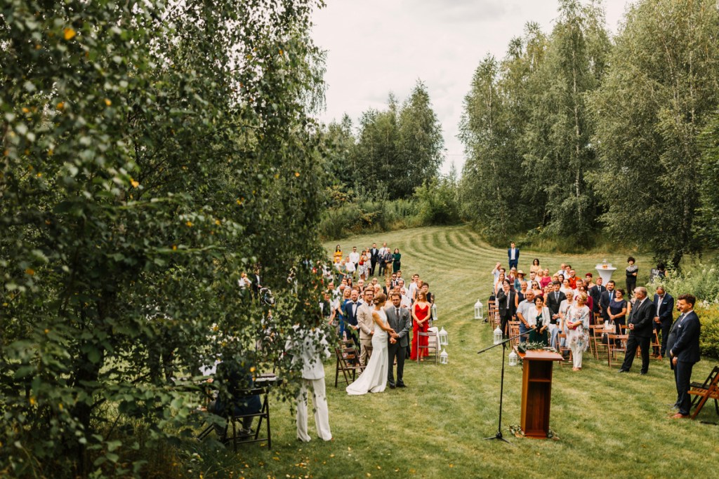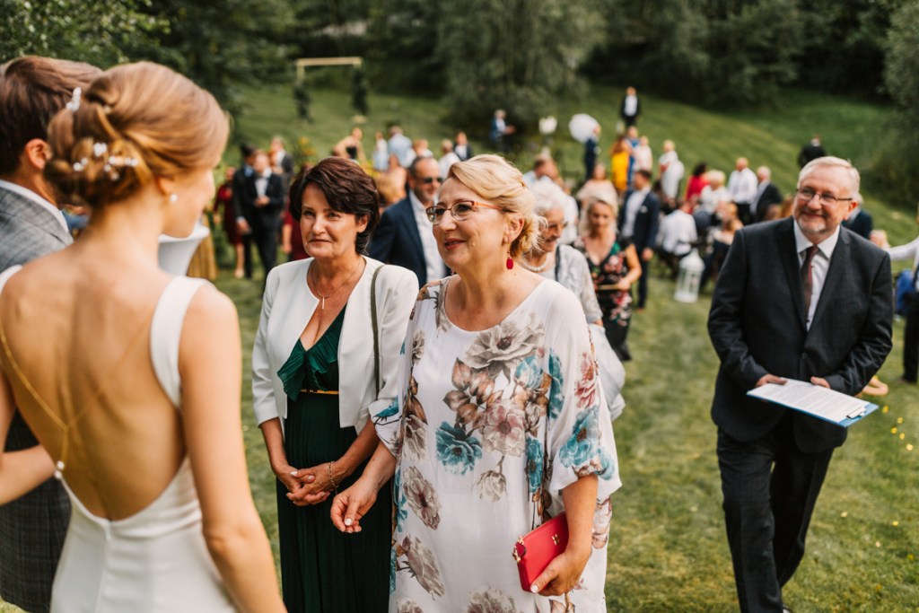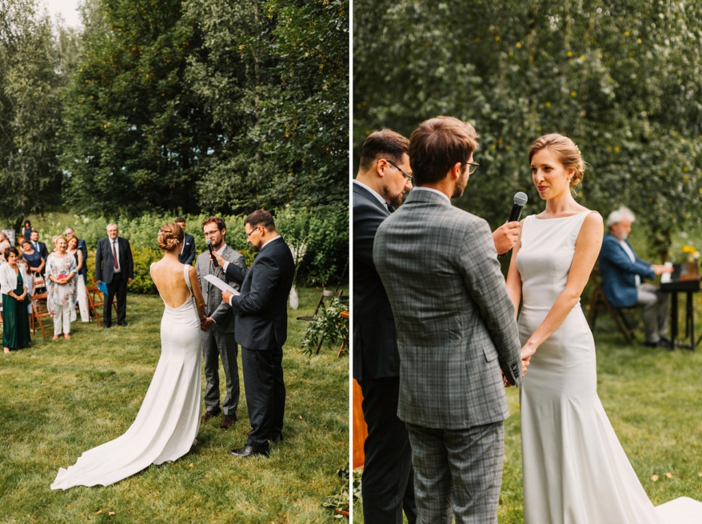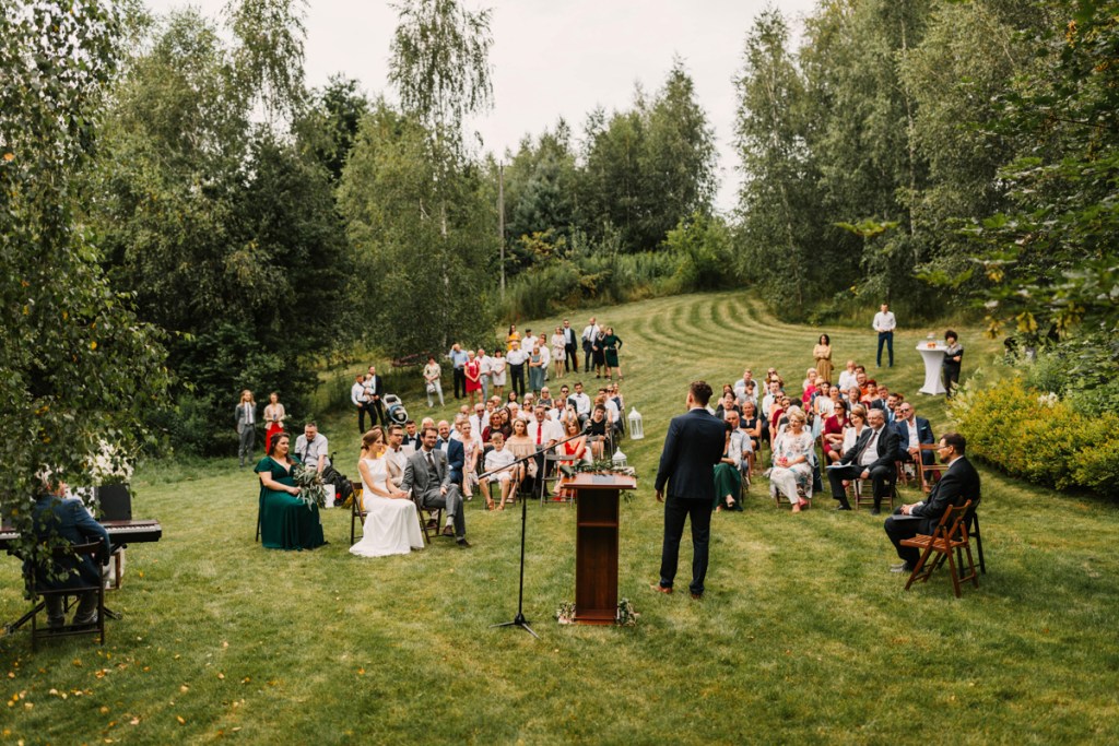 Mało? No to musicie wiedzieć, że była to ceremonia protestancka z udziałem dwóch celebrantów, muzyką na żywo, przemową taty i małym występem świadka – brata Asi, Mikołaja. Dodajcie do tego idealną pogodę i już wiecie, jak ekstra było!