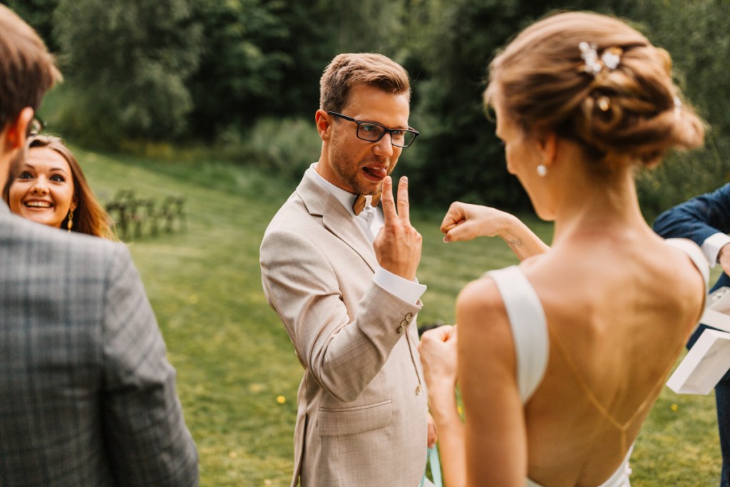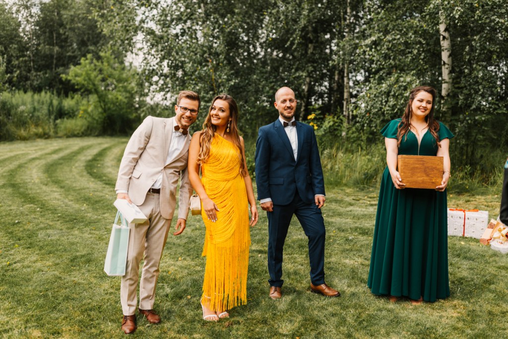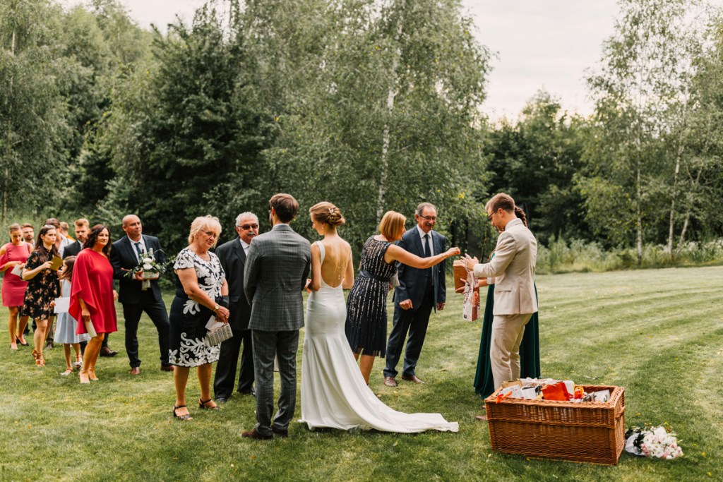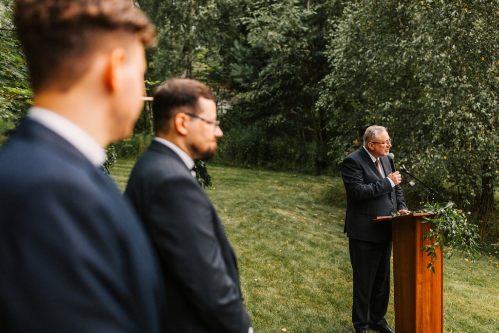 Sama ceremonia poza pięknymi słowami, muzyką i przemowami była dość standardowa. Wspólne przysięgi, złoto na palcach, pocałunki. Na koniec strzały z konfetti i życzenia pod drzewami. Lepiej się nie dało!