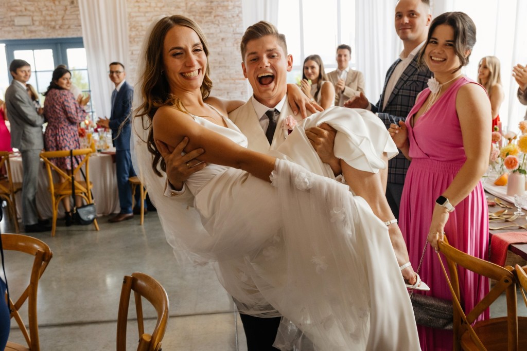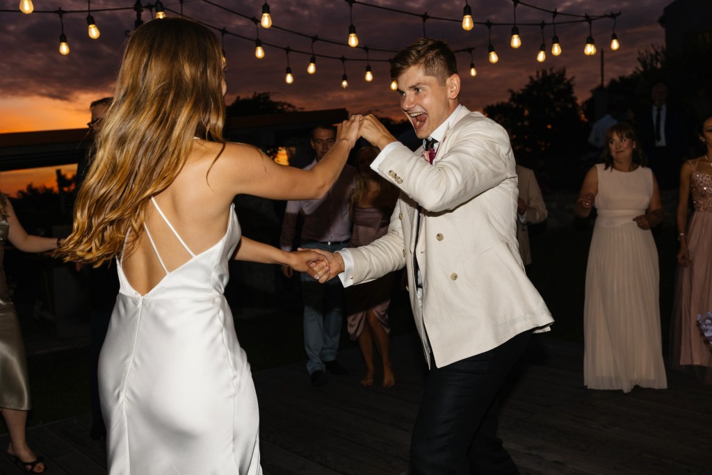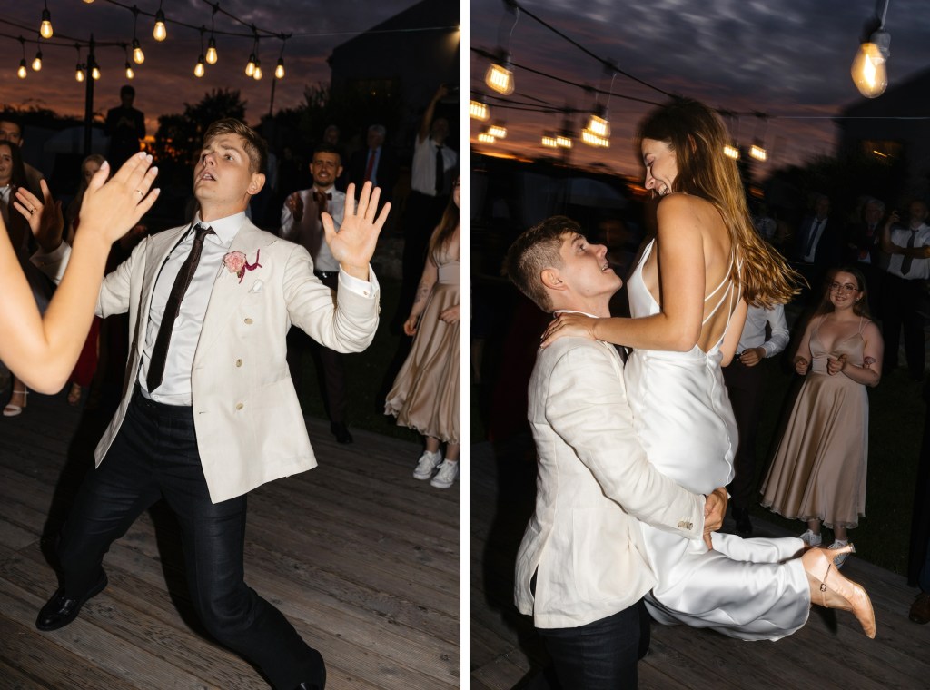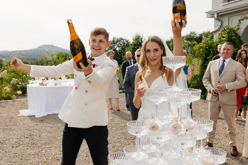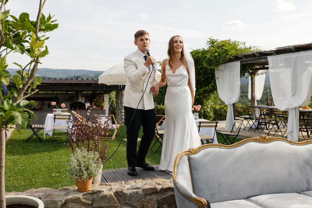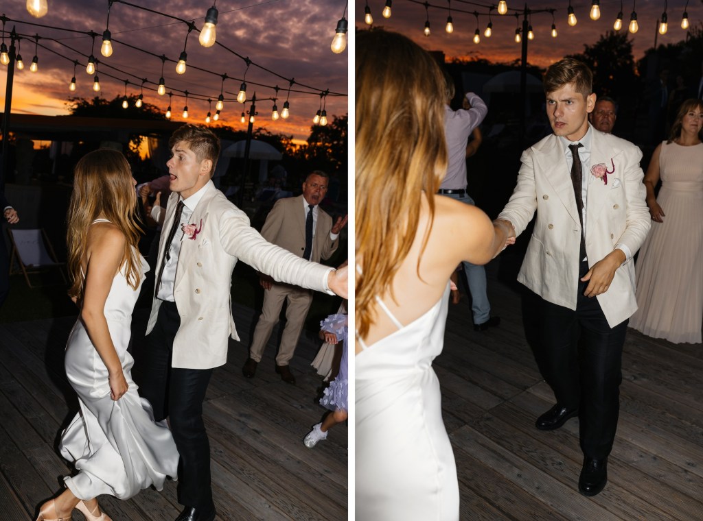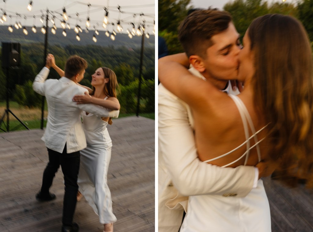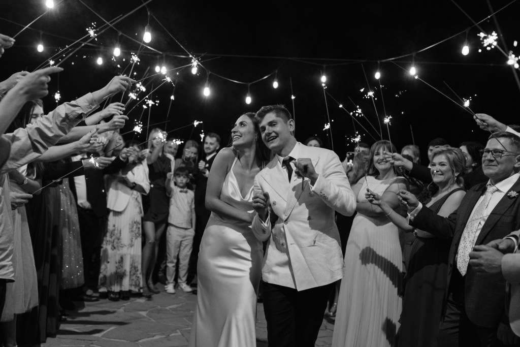 A potem… Villa rozbłysła w pełni. Detale tego dnia były dopracowane w najdrobniejszych szczegółach — od dekoracji, przez florystykę od Bello Matrimonio, aż po światło, które tego dnia wyjątkowo grało z moim fleszem. Tańce pod gołym niebem, śmiech, czułość, dzikość i spokój w jednym. Fotografowałem niemal non stop, korzystając z każdej szansy, by uchwycić te emocje.