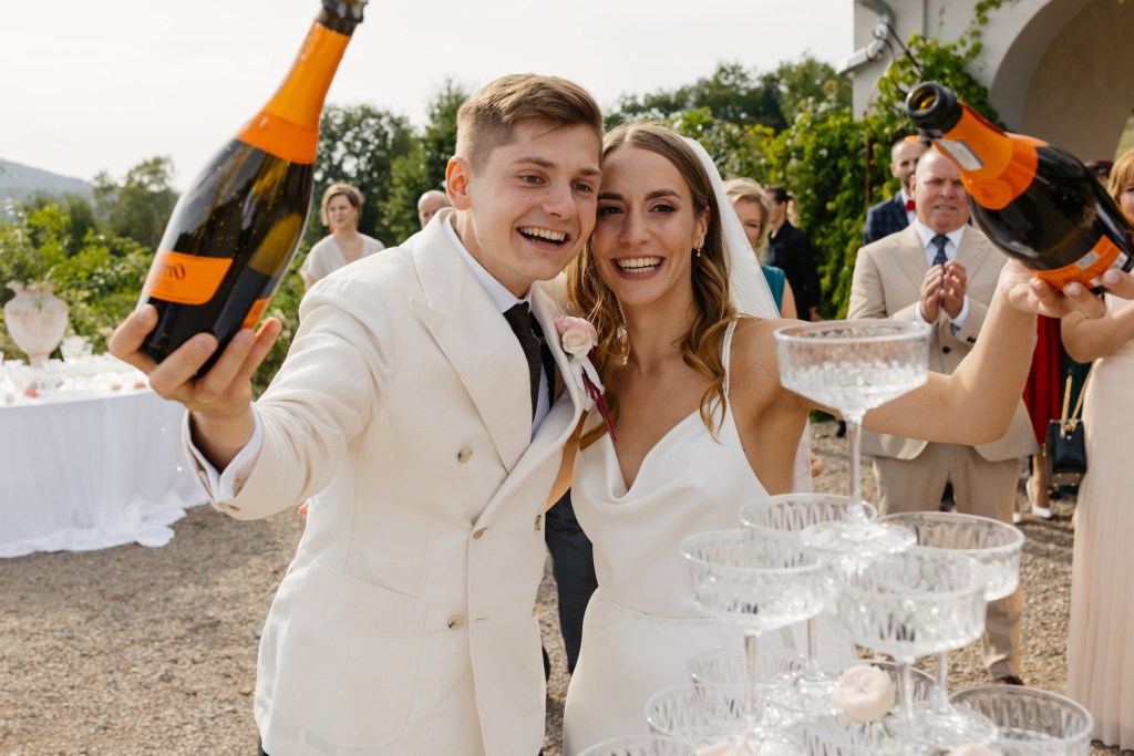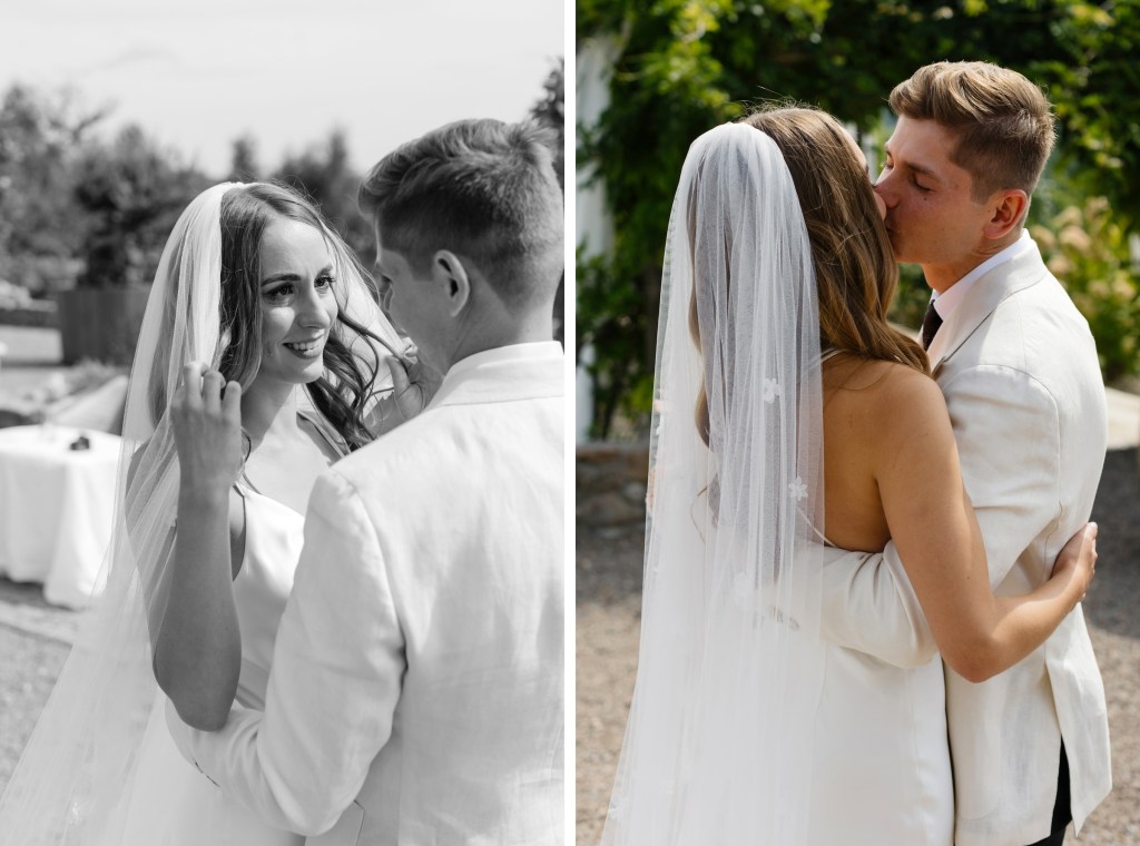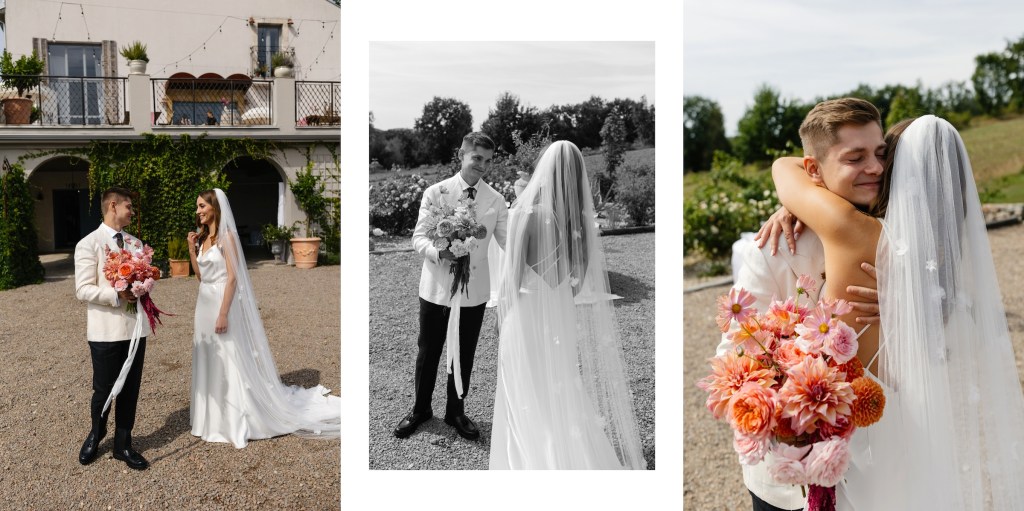 Przygotowania odbyły się w apartamentach Villi, w otoczeniu naturalnego światła i ciepłych emocji. Było lekko, intymnie, elegancko. Ich first look w ogrodzie — w tej zielonej, cichej przestrzeni — to był jeden z tych momentów, w których trudno oderwać się od aparatu.