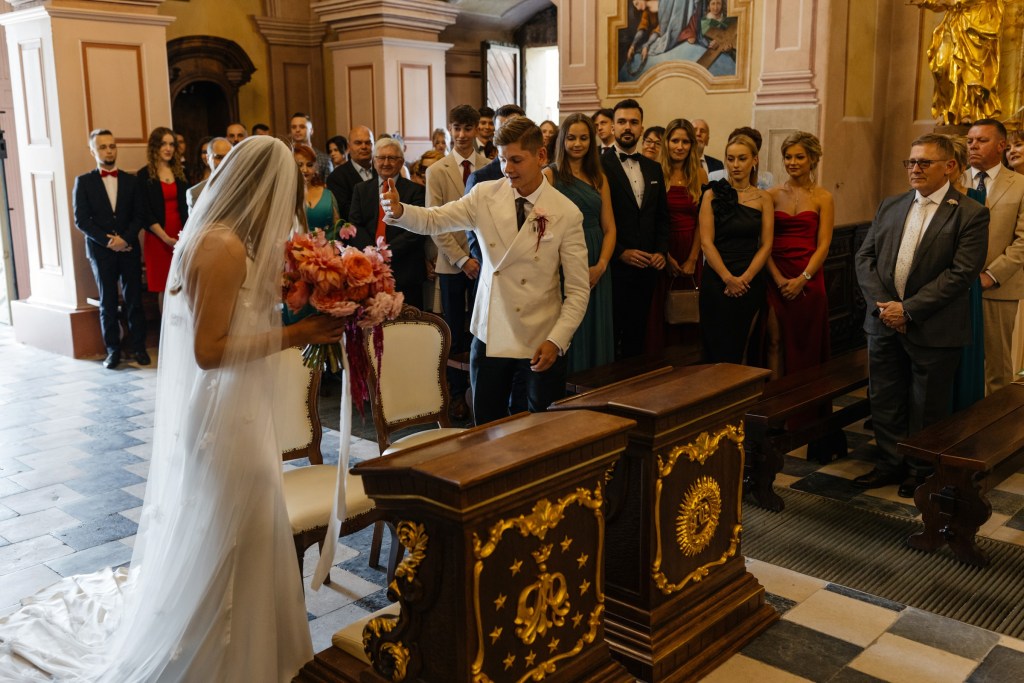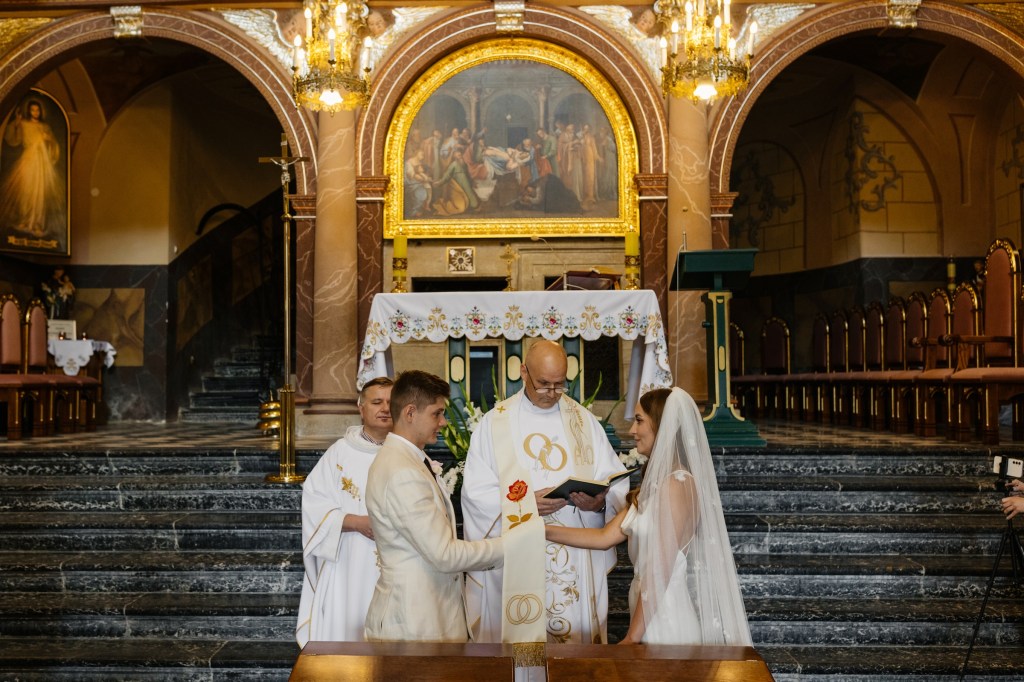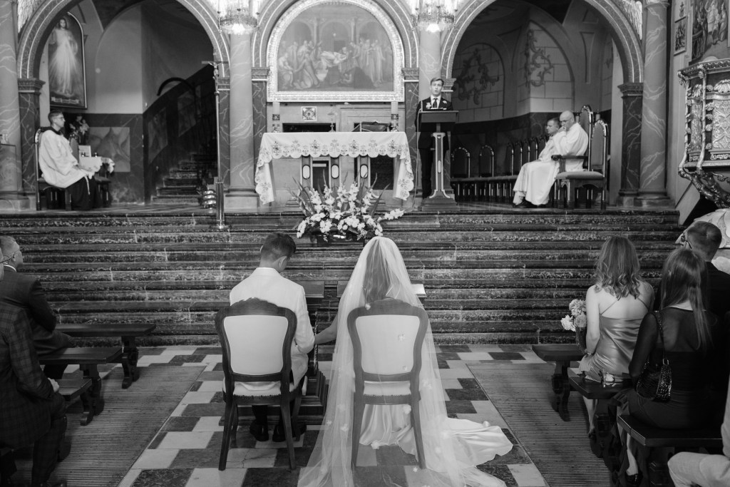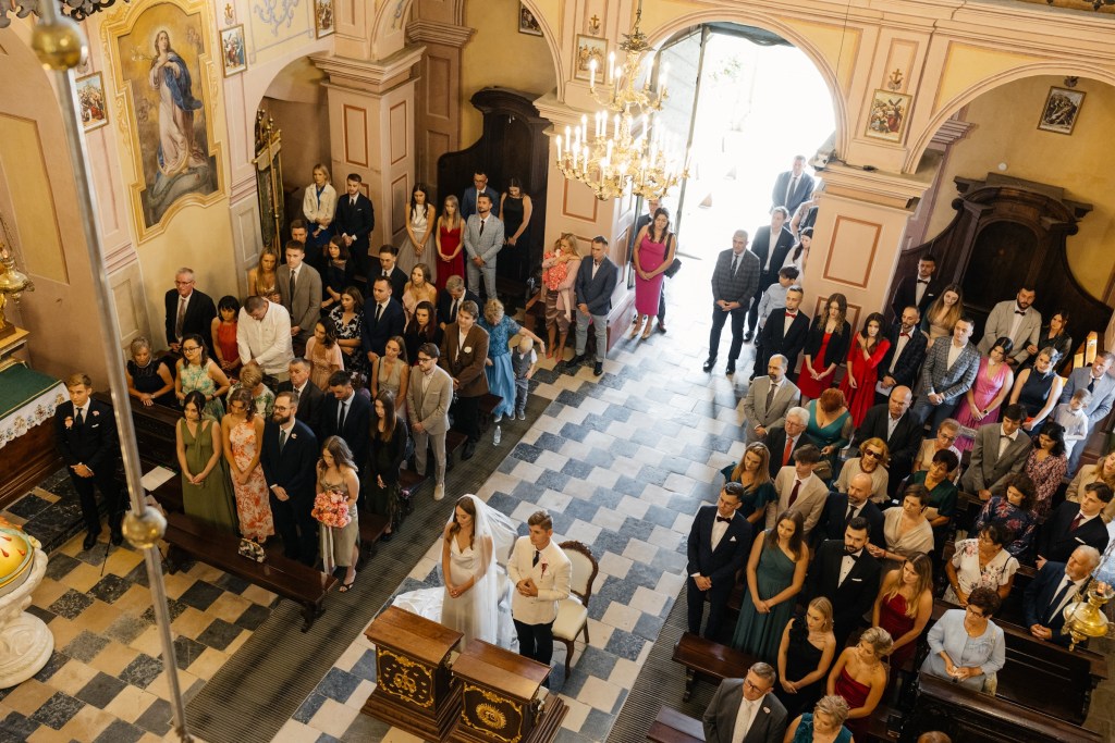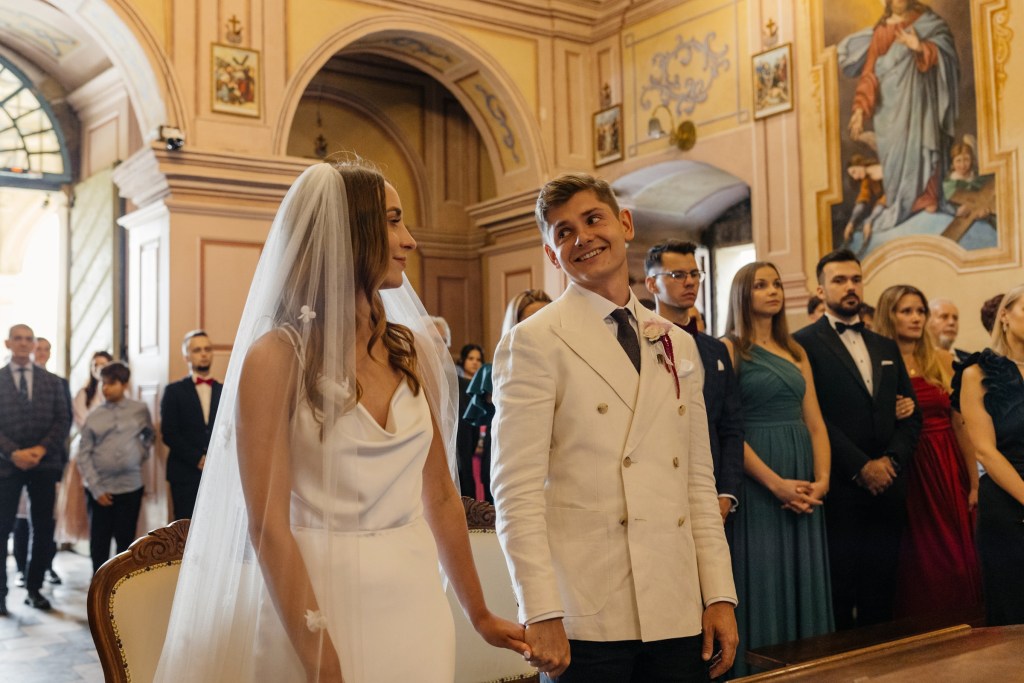 Ceremonia odbyła się w malowniczym kościółku w Brodach, zaledwie kilka minut od sali — kameralnie, autentycznie, z ogromnym wzruszeniem.