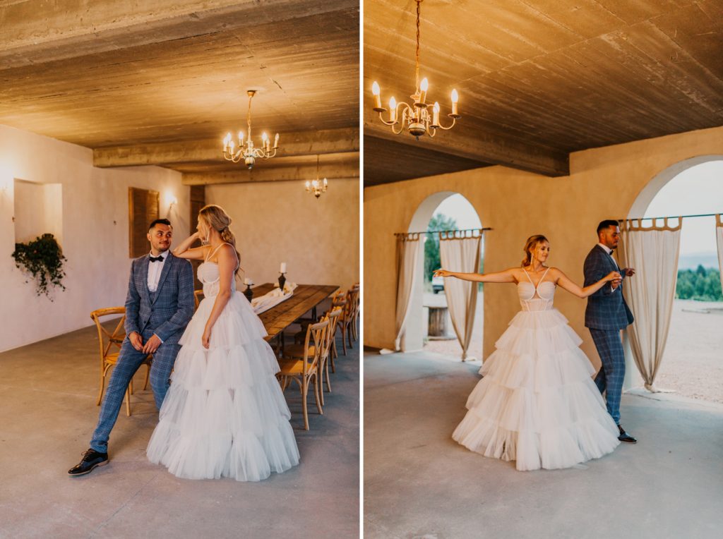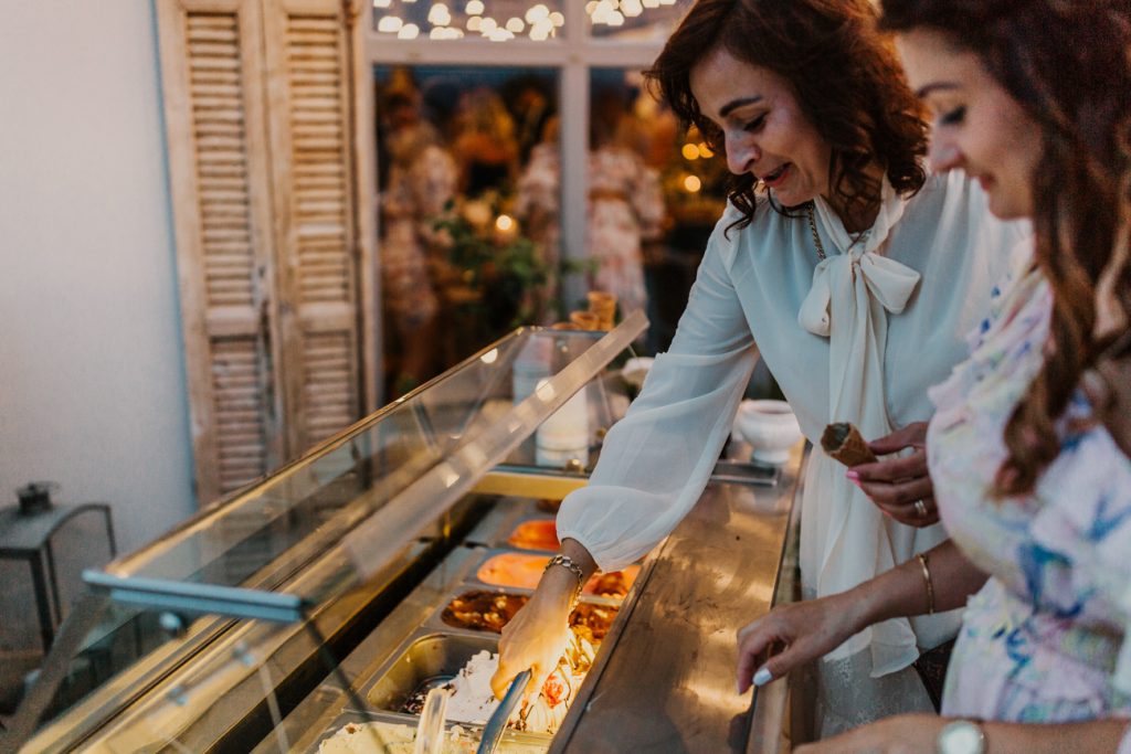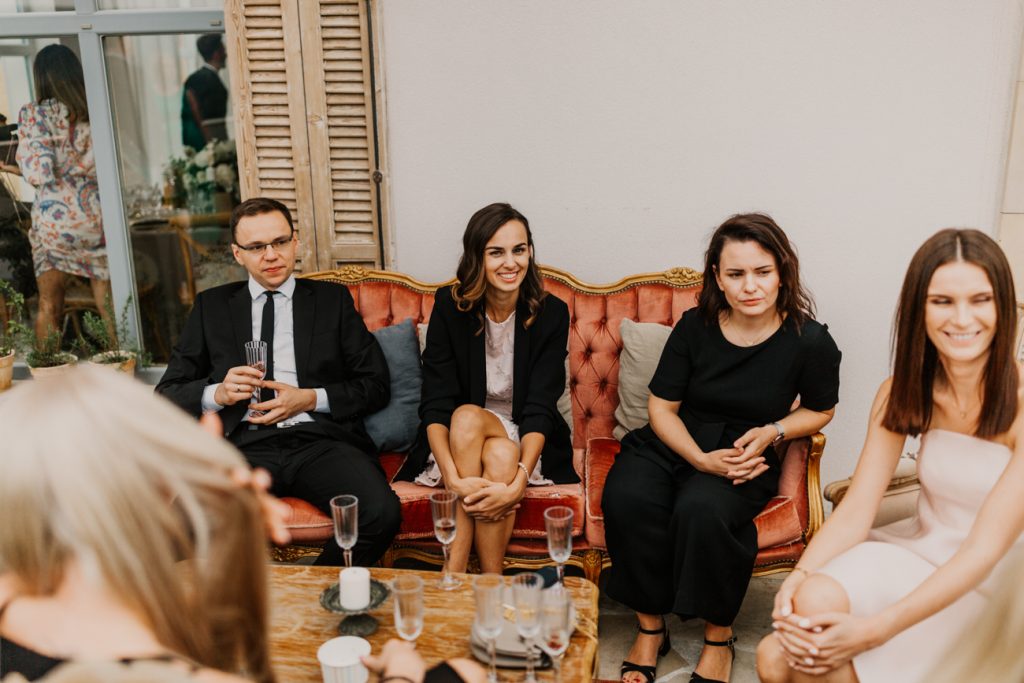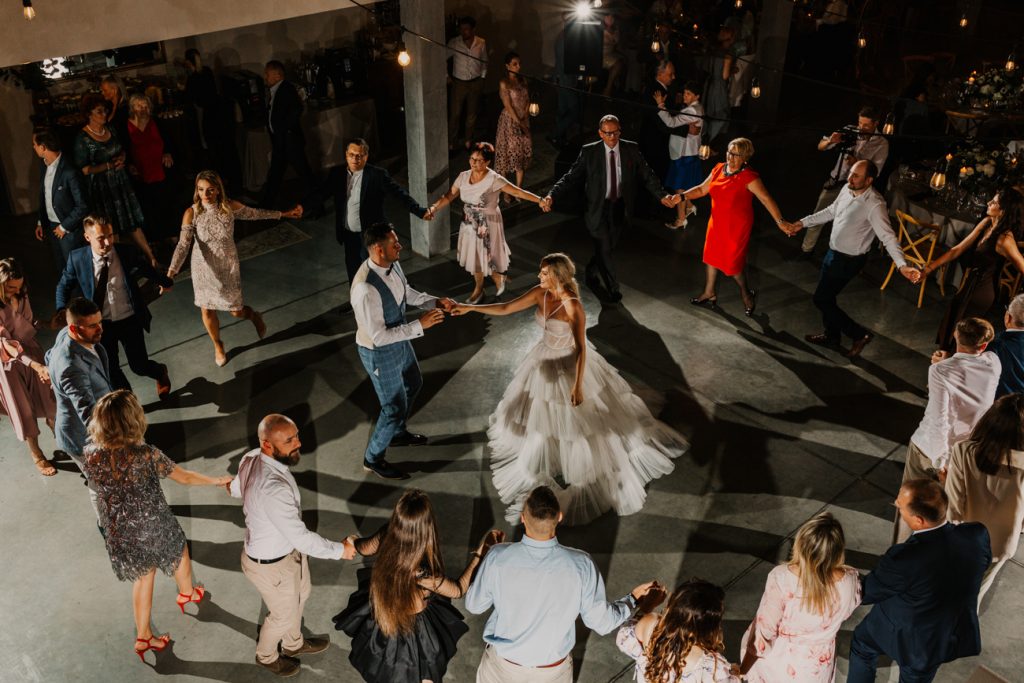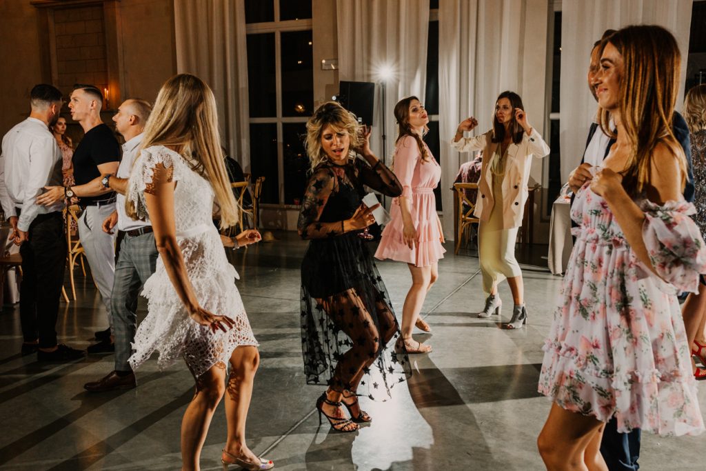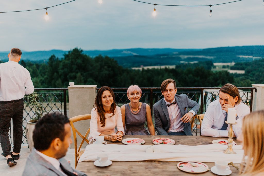 Nie było to typowe wesele, a jeśli trochę mnie znacie to wiecie, że właśnie takie imprezy lubię najbardziej. Impreza to zdecydowanie lepsze określenie tego co działo się później… kula dyskotekowa + profesjonalny DJ, który nigdy nie gra na ślubach = kawał dobrej zabawy i naprawdę ostre densy na parkiecie. Krótko mówiąc – był ogień. Poza parkietem również „się działo”. Na tarasie serwowane były lody, a w strefie chilloutu brakowało miejsca dla gości. Długi stół, oczywiście we włoskim stylu, był zapełniony i trudno się dziwić, ponieważ taras zdecydowanie zachęca do weselnego chilloutu.