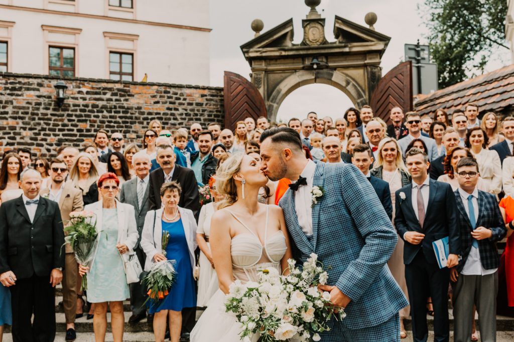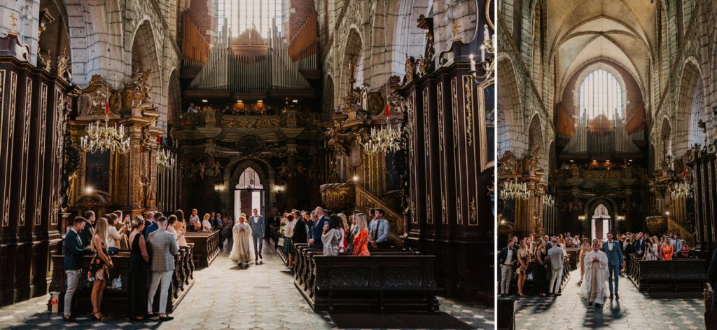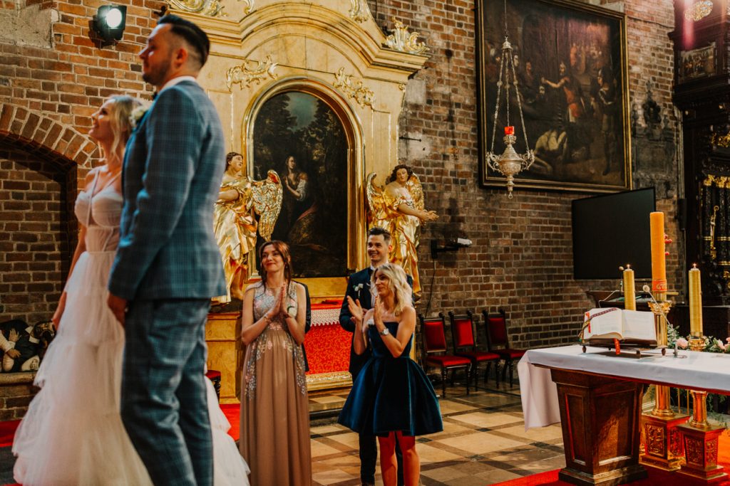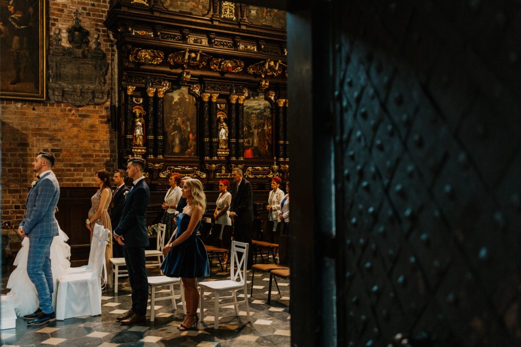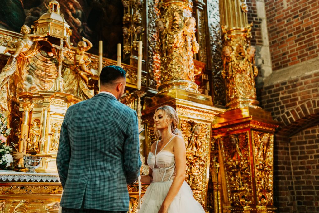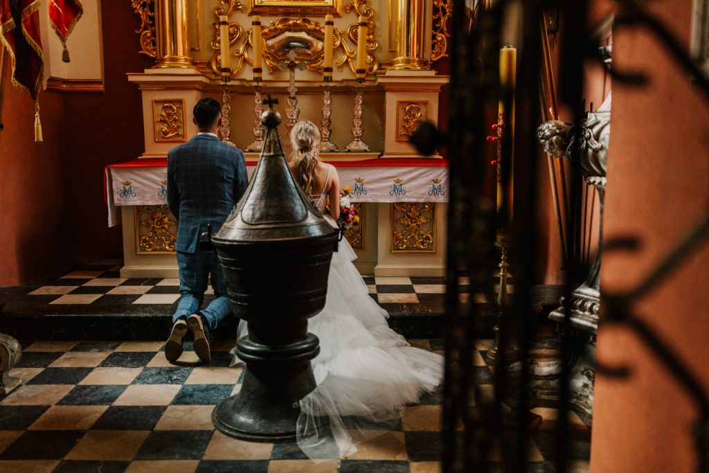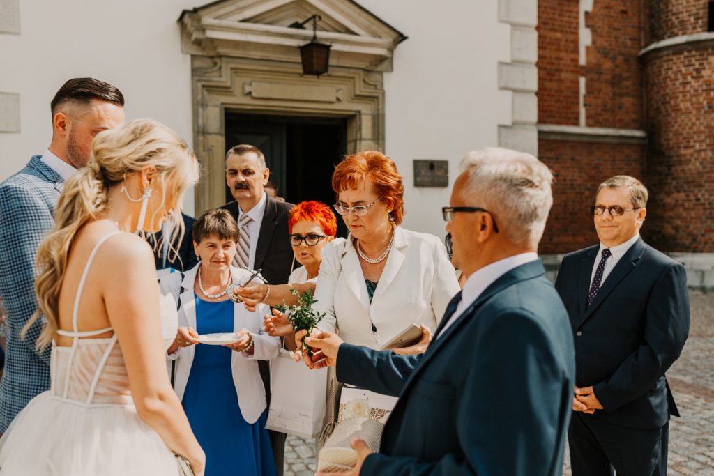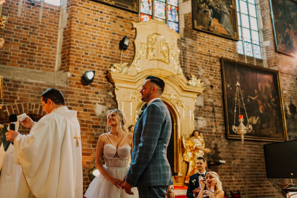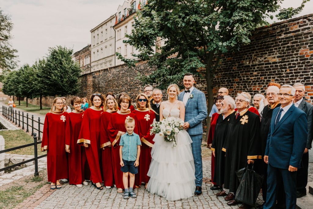 Ewa z Tomkiem nie zdecydowali się na zdjęcia z przygotowań, dlatego reportaż otwierają zdjęcia miejsca (lub venue, jak kto lubi), a następnie pojawiają się fotografie z ceremonii w pięknej bazylice Bożego Ciała w Krakowie. Znalazło się tez miejsce i czas na szybką mini sesje ślubną w zbożu (które niestety mogło trochę ucierpieć przez niezliczone sesje które miały tam miejsce tego lata).