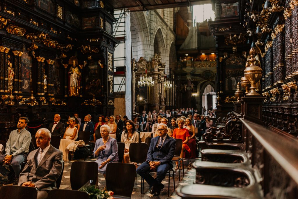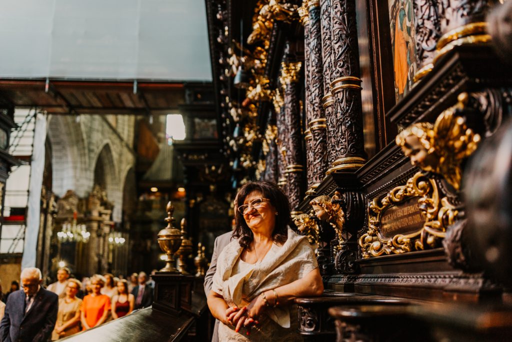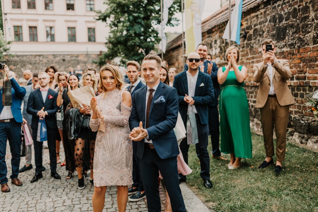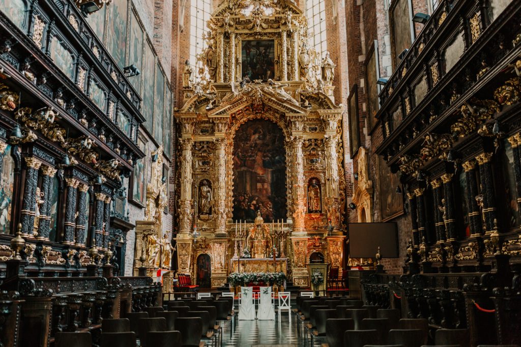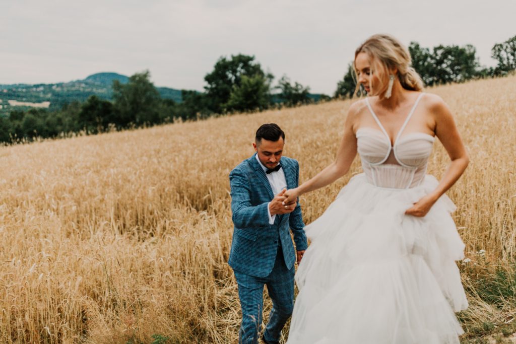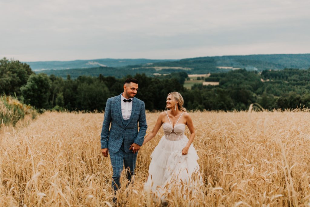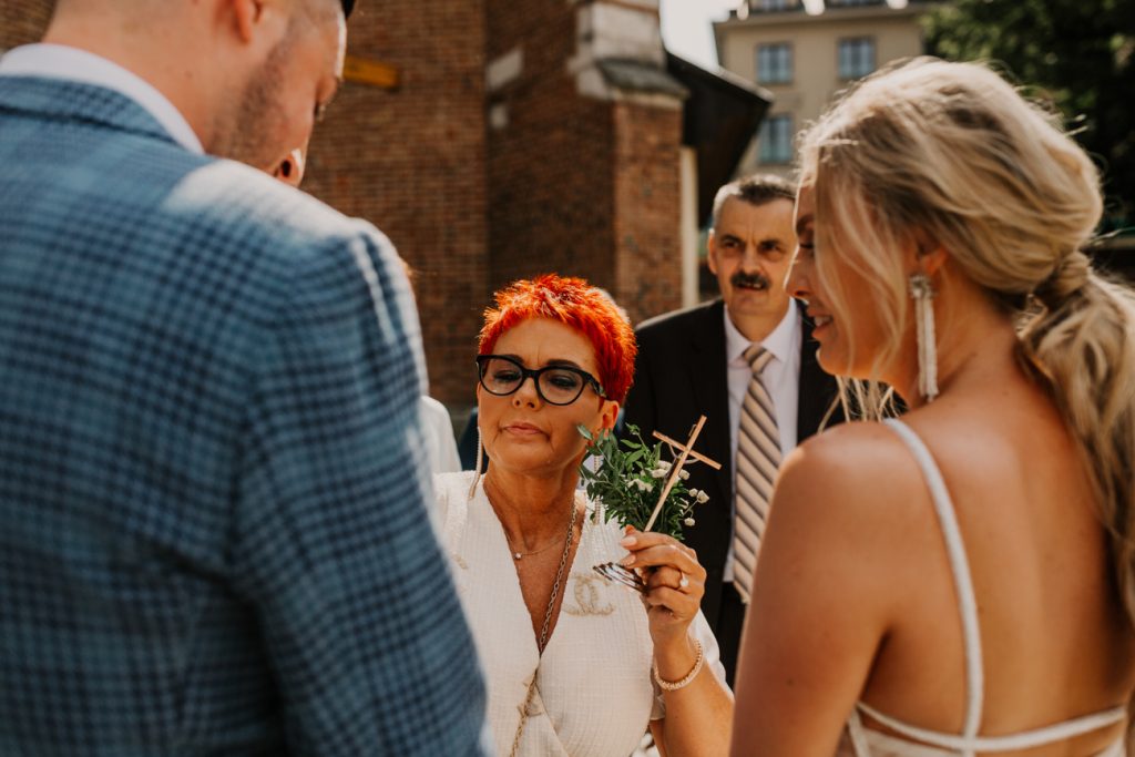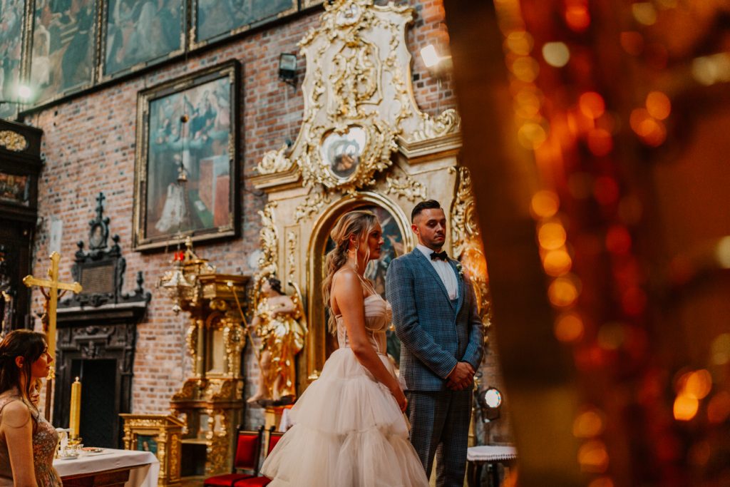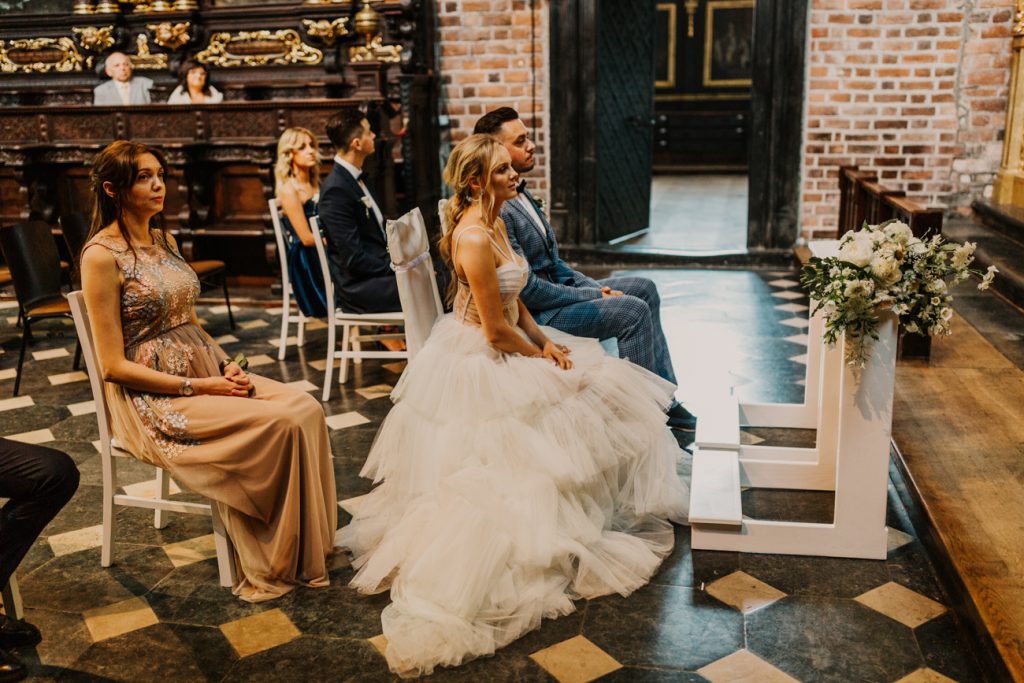 Ewa z Tomkiem nie zdecydowali się na zdjęcia z przygotowań, dlatego reportaż otwierają zdjęcia miejsca (lub venue, jak kto lubi), a następnie pojawiają się fotografie z ceremonii w pięknej bazylice Bożego Ciała w Krakowie. Znalazło się tez miejsce i czas na szybką mini sesje ślubną w zbożu (które niestety mogło trochę ucierpieć przez niezliczone sesje które miały tam miejsce tego lata).