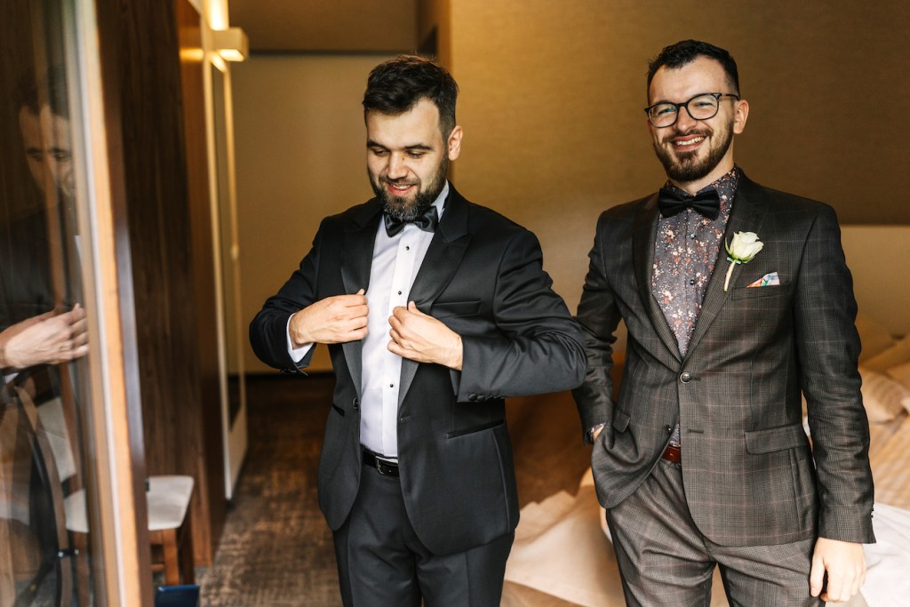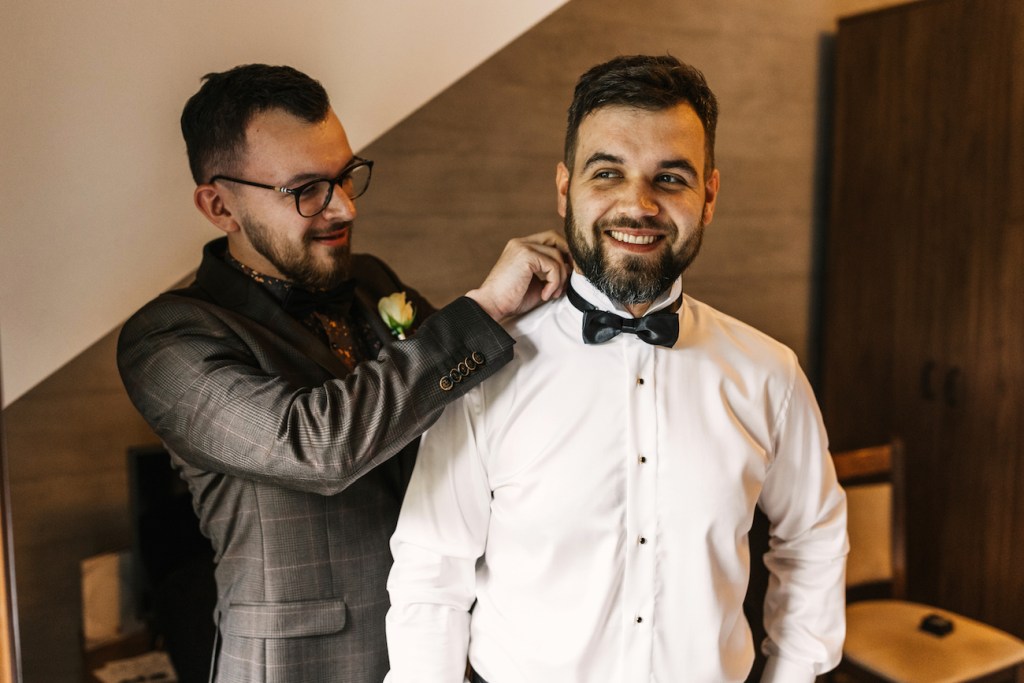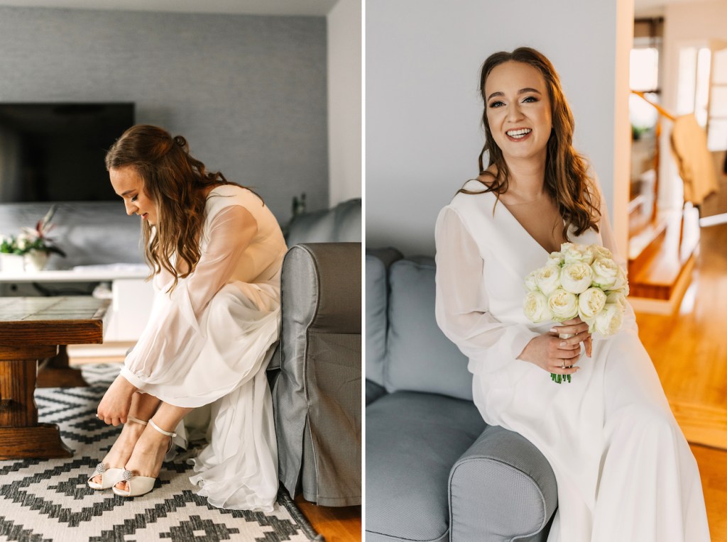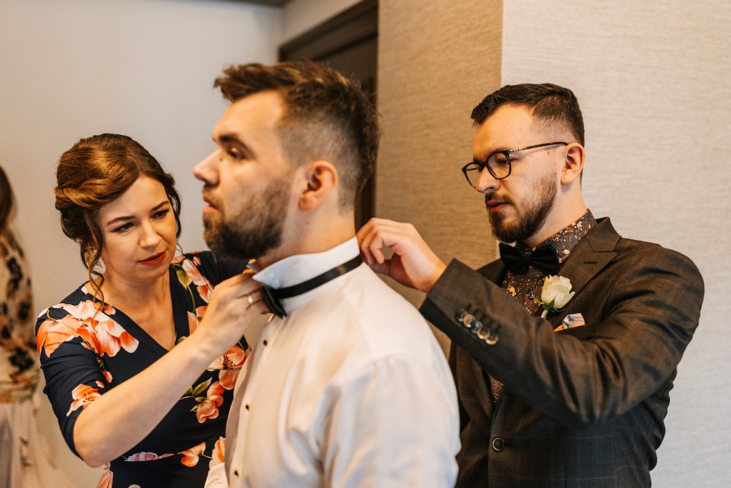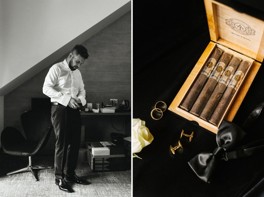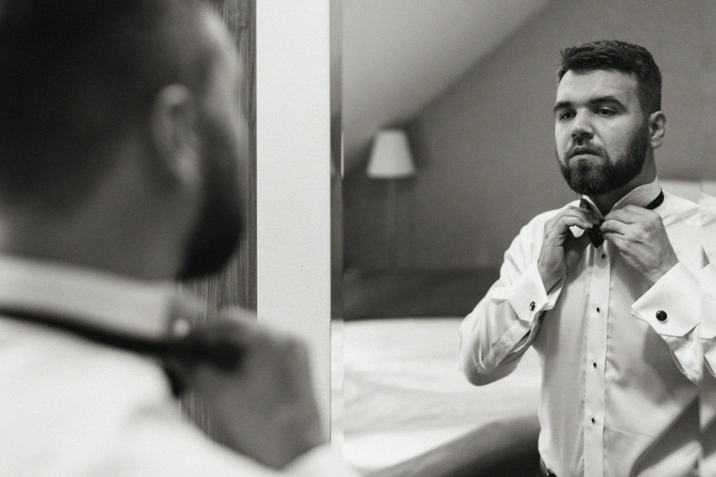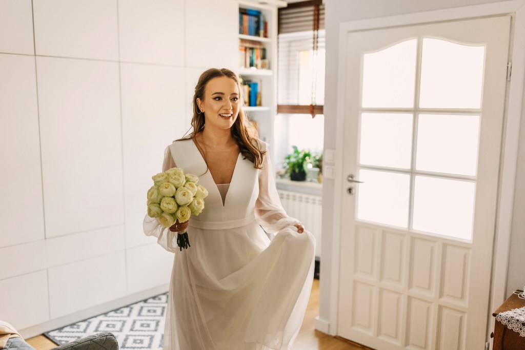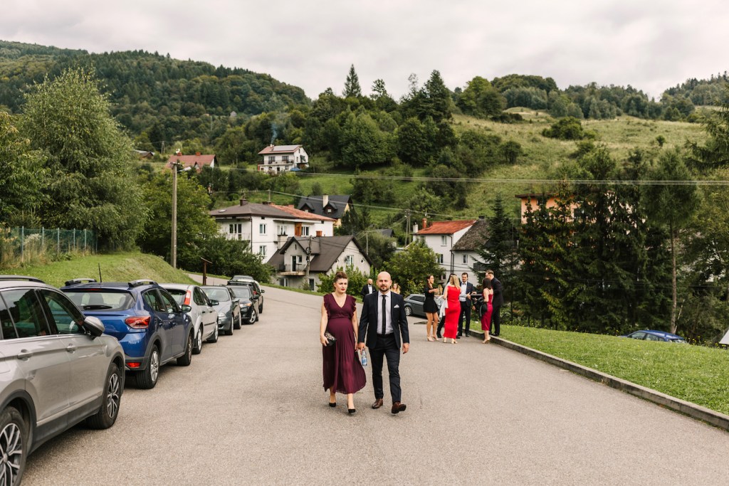 Tym razem miejscem, które miałem okazję odwiedzić była Willa Poprad w Rytrze. Miejsce pełne uroku, które swoim wyjątkowym umiejscowieniem wśród zieleni, wszystkich napełnia takim… spokojem. I tutaj właśnie rozpoczęliśmy naszą wspólną przygodę. Jako że młodzi zdecydowali się na przygotowania w dwóch osobnych miejscach, ich reportaż ze ślubu rozpoczął się od przygotowań Mateusza, który – wraz ze swoimi najbliższymi – czekał już na swój wielki dzień w Willa Poprad. Idealnie skrojony garnitur smokingowy, cygara i mocno zaangażowani w przygotowania najbliżsi. Te punkty można uznać za kluczowe, z ogromnym naciskiem na ten ostatni. Zwykle bywa tak, że rodzice są obecni w przygotowaniach, ale raczej chowają się lekko, ustępują drużbie, trochę z nieśmiałości przed kamerą, a trochę z chęcią pozostawienia swobodny młodym. I to też jest w porządku. Jednak uwierzcie mi, że w tym razem ich zaangażowanie i wsparcie, by dopiąć wszystko na ostatni guzik, pomóc w tych przygotowaniach – nie tylko skutecznie rozładowało stres wszystkich tu zebranych, ale wprowadziła też przecudowną atmosferę, która towarzyszyła nam już do samego końca tego dnia! Zdjęcia aż robiły się same! I dokładnie to samo działo się po drugiej stronie – u naszej panny młodej, która w tym samym czasie przygotowywała się w swoim rodzinnym domu. Wszystko to z uśmiechem i lampką prosecco w ręku!Gdy przepiękna sukienka z jednego z moich ulubionych salonów sukni ślubnych (Strefa Panny Młodej) została założona, na nogach Oli pojawiły się już stylowe czółenka od Jimmy’ego Choo, a w rękach zawitał bukiet angielskich róż (kwiaciarnia Loftowa z Nowego Sącza) – mogliśmy wyruszyć w stronę kościoła.