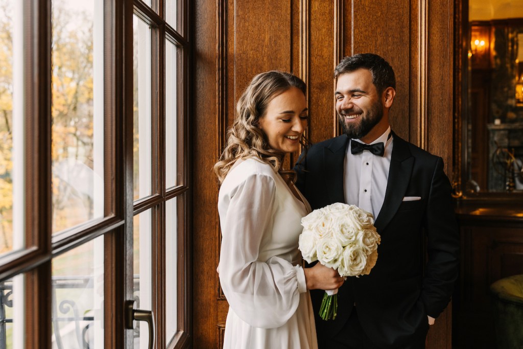 Na sesji plenerowej spotkaliśmy się już innego dnia. Tym razem wybór padł na Pałac Goetza w Brzesku. Majestatyczny, zapierający dech w piersiach, idealnie pasował do eleganckich stylizacji Oli i Mateusza, nie odbierając im przy tym ani odrobiny ich niesamowitej naturalności. Majestatyczne wnętrza i ich angielska elegancja razem w zestawieniu sprawiły, że całość spokojnie mogłaby zostać opublikowana na stronie Księstwa Cambridge. I nikt, ale to nikt, nie pomyślałby, że nie należą oni do królewskiej rodziny.